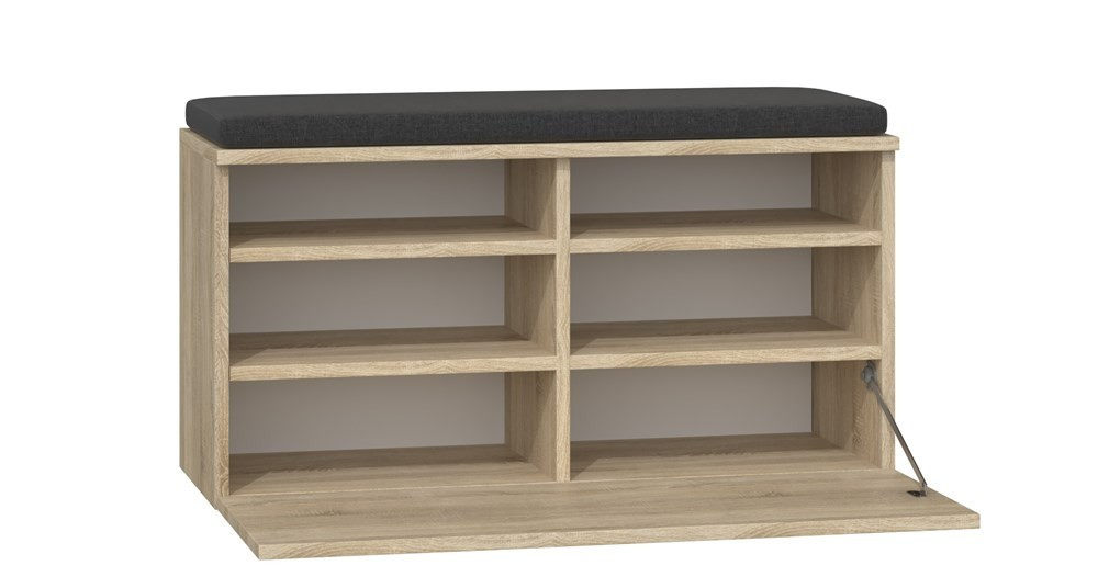 Stylový botník se sedákem Rory je ideálním řešením pro ty, kteří ocení kombinaci jednoduchosti a elegance. Nábytek je vyroben z vysoce kvalitního lamina, které je snadno udržovatelné a odolné proti oděru, dlouhou životnost nábytku zajišťují hrany zakončené odolným ABS materiálem.