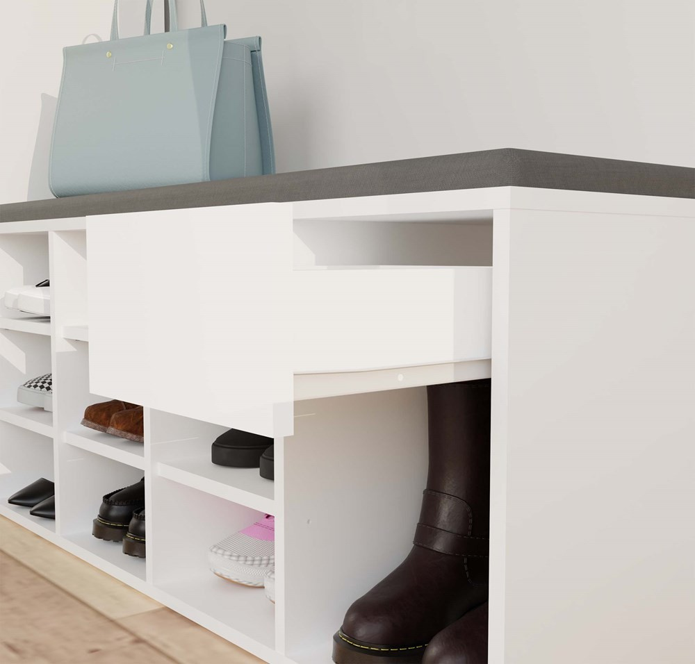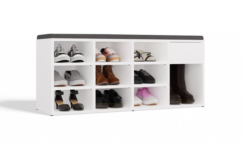 Nadčasový botník Tazin představuje praktické a stylové řešení pro každou předsíň – nabízí pohodlné sezení a zároveň dostatek úložného prostoru pro vaše boty i drobnosti. Nábytek je vyroben z odolného a snadno udržovatelného lamina.