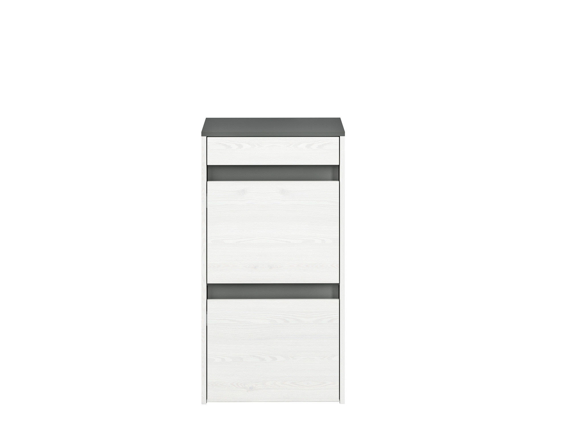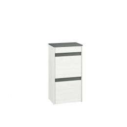 Botník HYGA 04 je mimořádně funkční kus nábytku do předsíně. Světlý dekor sněhové borovice opticky zvětší halu, zatímco antracitově zbarvené vložky a horní část dodají interiéru na zajímavosti.