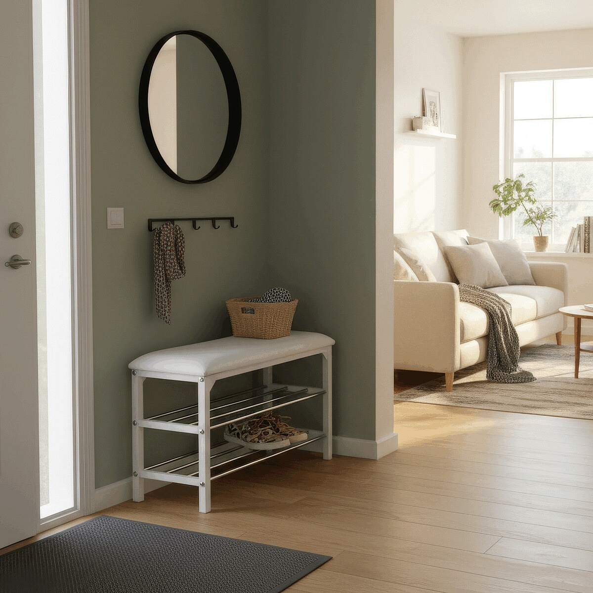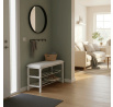 Botník / taburet 83168-13 WT značky Autronic kombinuje praktické uspořádání úložného prostoru s komfortním posezením díky čalouněnému sedáku potaženému černou ekokůží. Konstrukce je vyrobena z kovu s bílým matným práškovým lakem, který zajišťuje odolnost proti poškození a dlouhou životnost. Dvě chromované police nabízejí dostatek místa pro uložení obuvi, přičemž jejich otevřená konstrukce umožňuje efektivní větrání a snadnou údržbu. Stabilní rám s výztuhami garantuje pevnost a bezpečnost při sezení, což zvyšuje ergonomii a praktičnost v předsíních či chodbách. Celkový design botníku je minimalistický a snadno se integruje do různých interiérových stylů, přičemž bílá barva rámu a černý sedák vytváří elegantní kontrast. Nosnost taburetu odpovídá běžným požadavkům na sezení a rozměry jsou optimalizovány pro komfortní využití i v menších prostorách.