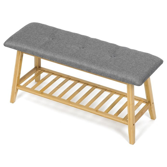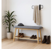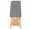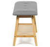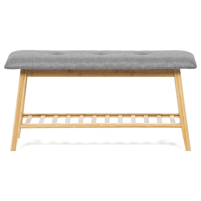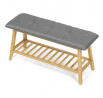 Botník a taburet DR-N1012 GREY2 značky Autronic kombinuje praktickou funkci se stylovým designem vhodným do moderních interiérů. Konstrukce je vyrobena z masivního bambusu v přírodním odstínu, který zajišťuje vysokou pevnost a odolnost proti opotřebení, zároveň přináší přírodní estetiku a ekologický rozměr. Sedák je čalouněný šedou látkou s jemnou strukturou a decentním prošitím, které zvyšuje komfort při sezení a zároveň dodává výrobku elegantní vzhled. Pod sedákem je umístěna otevřená police tvořená bambusovými lamelami, která nabízí praktický prostor pro uložení obuvi nebo dalších předmětů, čímž přispívá k lepší organizaci prostoru. Stabilní konstrukce s mírně šikmými nohami zajišťuje pevnost a bezpečnost při používání, zatímco přírodní povrchová úprava bambusu chrání materiál a usnadňuje údržbu. Botník je vhodný do předsíní, chodeb či ložnic, kde oceníte kombinaci funkčnosti a přírodního designu.