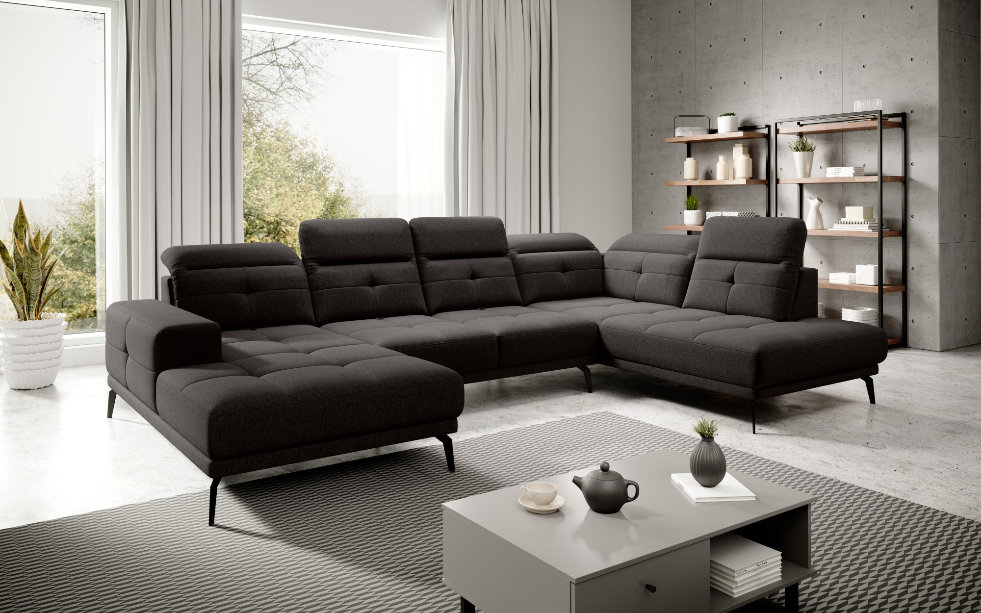 Bretan je pohodlná, moderní a designová rohová pohovka. Velká velikost a modernost jsou vlastnosti, kterými se Bretan vyznačuje. Pohodlí poskytované rohem je díky sedadlům vyplněným vysoce elastickou HR pěnou se zvýšenou odolností a pevností. Nábytek má opěrky hlavy a opěrky zad, které lze snadno nastavit pro dosažení nejpohodlnější polohy těla. Charakteristické černé nohy se zajímavým tvarem dodávají nábytku originalitu a pohodlná opěrka rukou umožňuje pohodlný odpočinek. Za zmínku také stojí, že nohy nábytku jsou velké až 18 cm, což vám umožňuje snadno udržovat čistotu pod rohem. Rozměry produktu jsou: 350 x 201 x 107 cm. Navíc je čalounění nábytku k dispozici v mnoha zajímavých barvách. Rohová pohovka Bretan má zajímavý tvar a důmyslné funkce, přičemž jejími charakteristickými rysy jsou také elegantní prošívání a pevný čalounický materiál. Bretan je kus nábytku vyrobený v duchu modernity.
