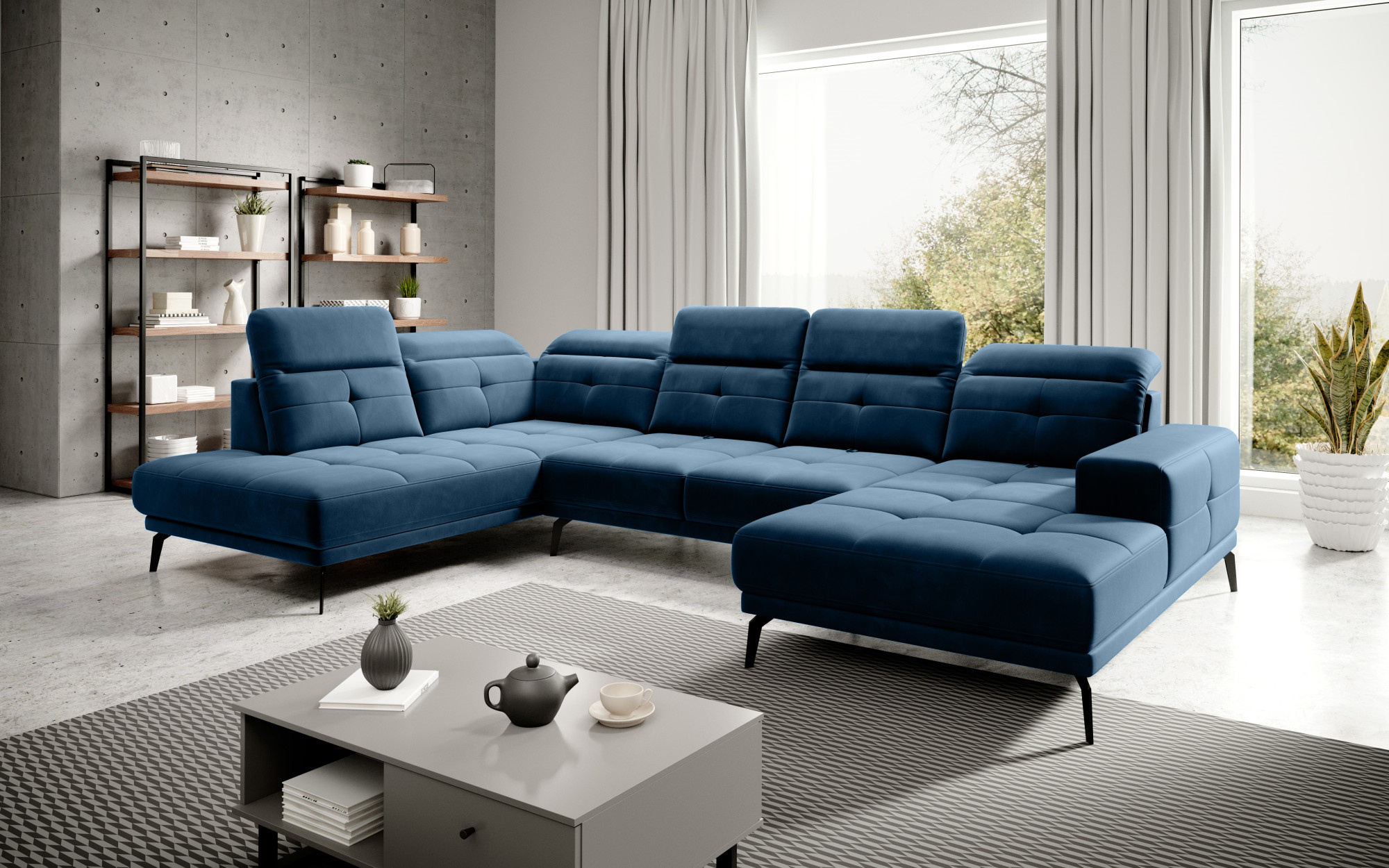 Bretan je pohodlná, moderní a designová rohová pohovka. Velká velikost a modernost jsou vlastnosti, kterými se Bretan vyznačuje. Pohodlí poskytované rohem je díky sedadlům vyplněným vysoce elastickou HR pěnou se zvýšenou odolností a pevností. Nábytek má opěrky hlavy a opěrky zad, které lze snadno nastavit pro dosažení nejpohodlnější polohy těla. Charakteristické černé nohy se zajímavým tvarem dodávají nábytku originalitu a pohodlná opěrka rukou umožňuje pohodlný odpočinek. Za zmínku také stojí, že nohy nábytku jsou velké až 18 cm, což vám umožňuje snadno udržovat čistotu pod rohem. Rozměry produktu jsou: 350 x 201 x 107 cm. Navíc je čalounění nábytku k dispozici v mnoha zajímavých barvách. Rohová pohovka Bretan má zajímavý tvar a důmyslné funkce, přičemž jejími charakteristickými rysy jsou také elegantní prošívání a pevný čalounický materiál. Bretan je kus nábytku vyrobený v duchu modernity.
