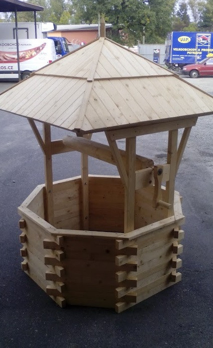Dřevěná studna okrasná pro zkrášlení venkovních prostor a zahrad. Studna obsahuje kolovrátek . Studna je provedena z masívního dřeva. Velmi pěkná do zahrad jako dekorace či nástavba na stávající studny.