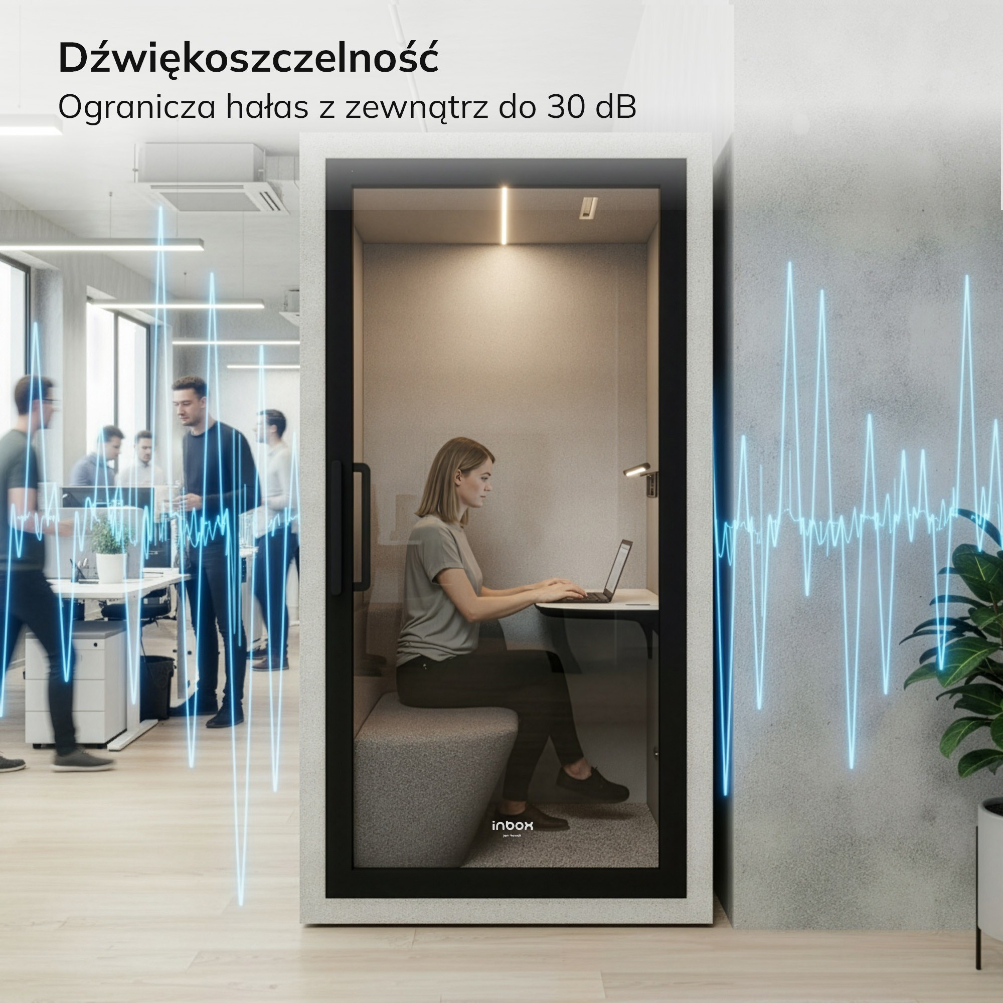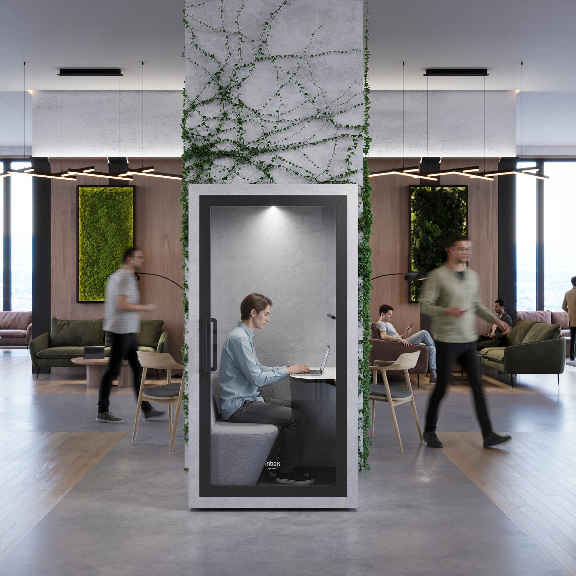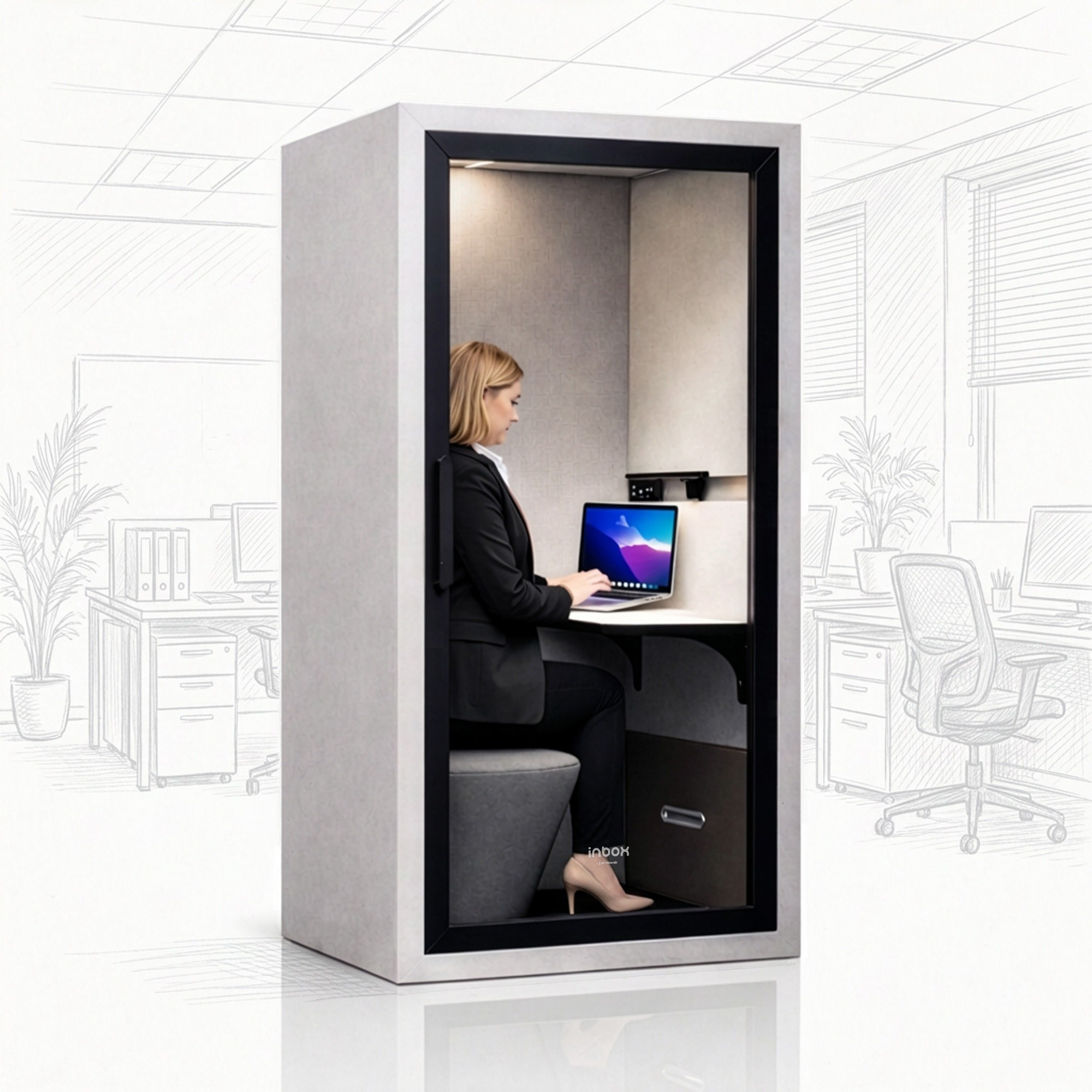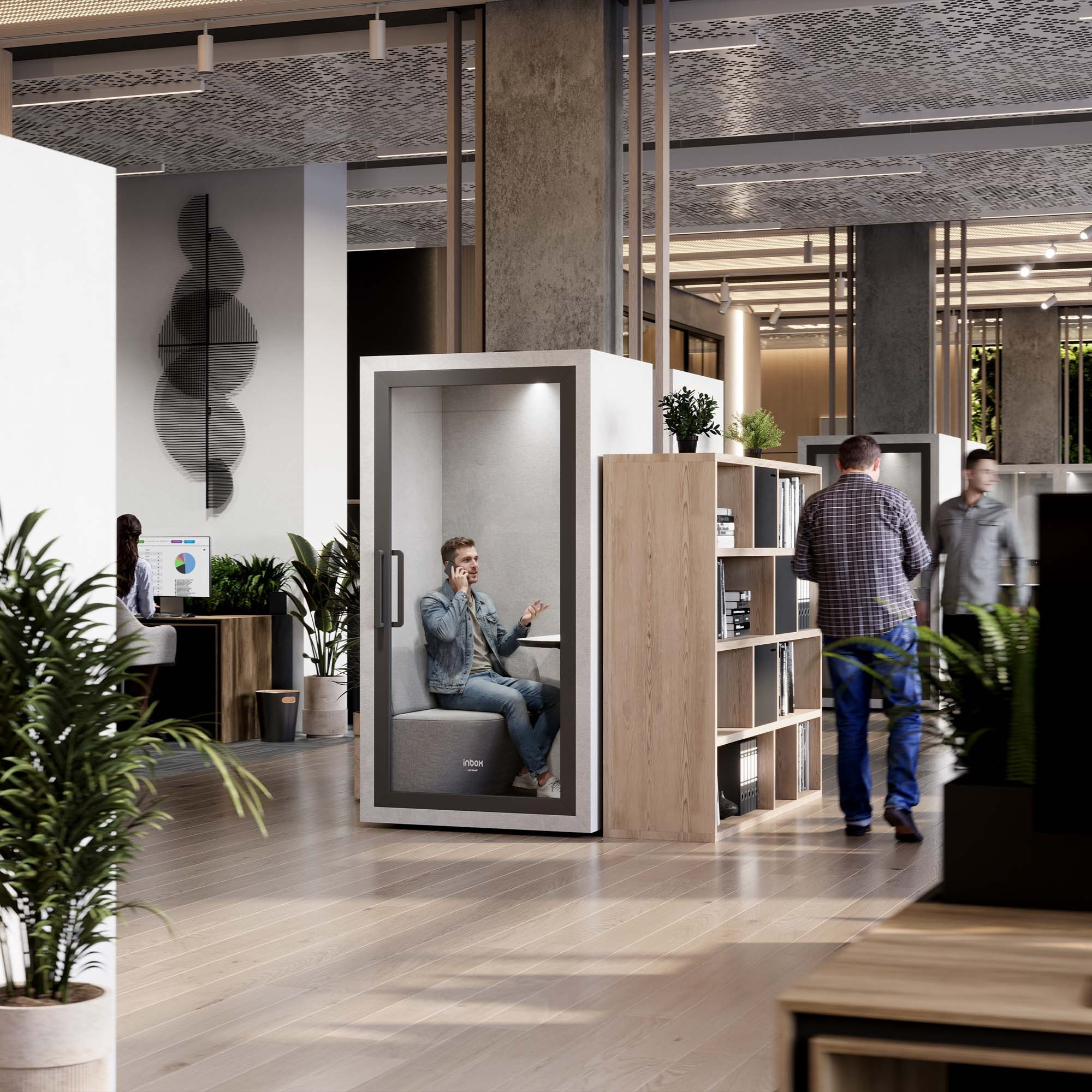 Akustická budka do kanceláře INBOX 1-osobová 2100 x 1100 x 900 mm