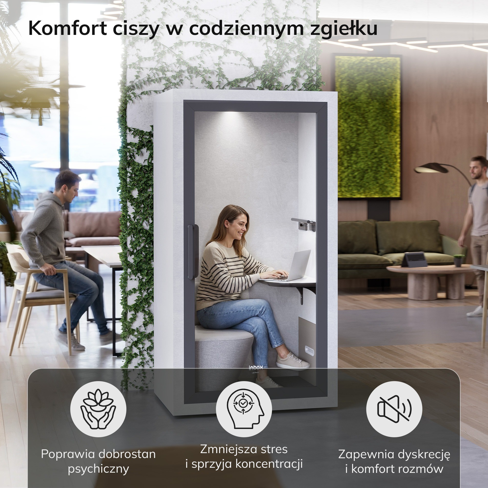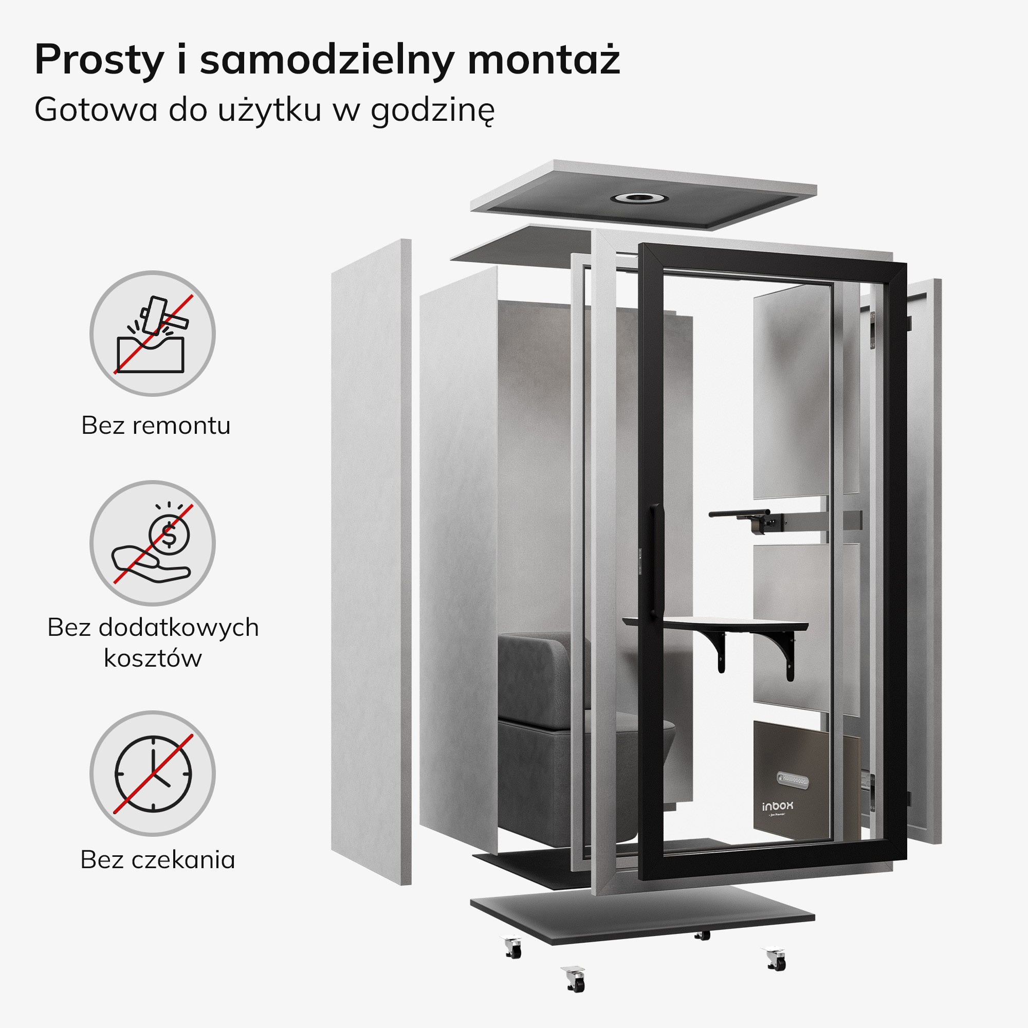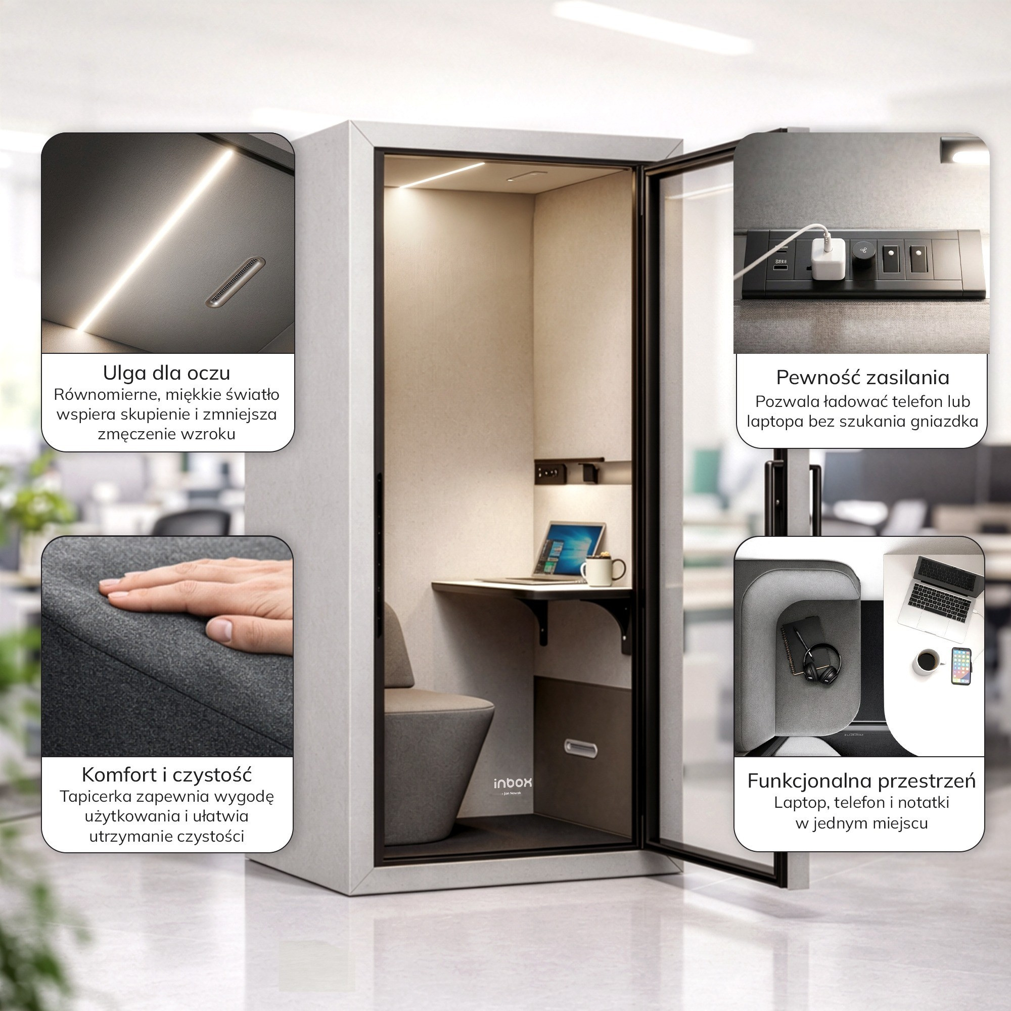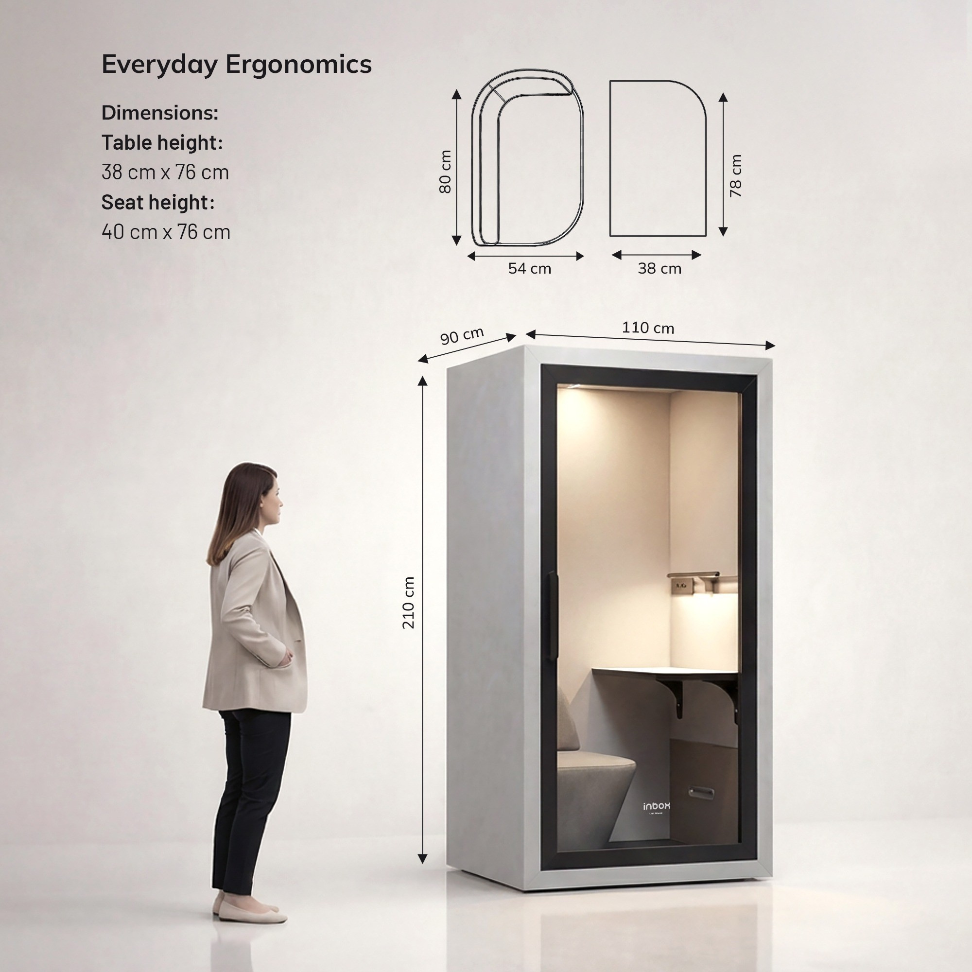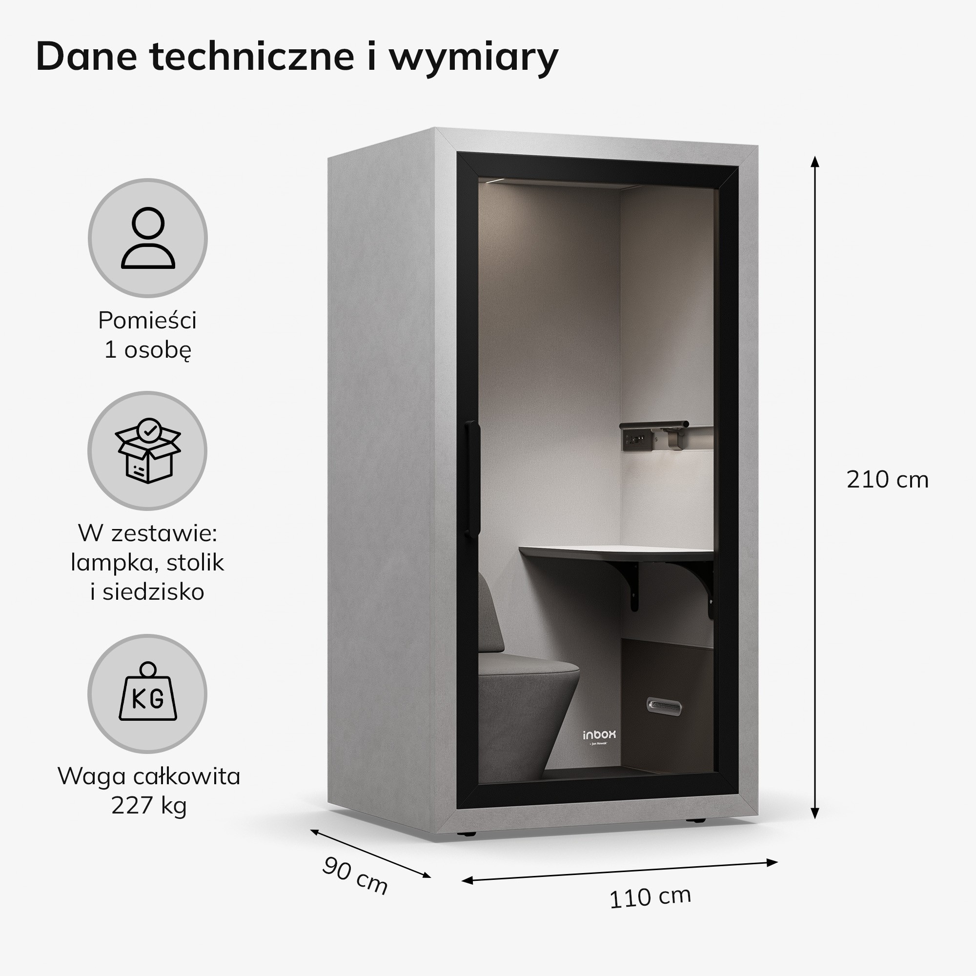 Akustická budka do kanceláře INBOX 1-osobová 2100 x 1100 x 900 mm