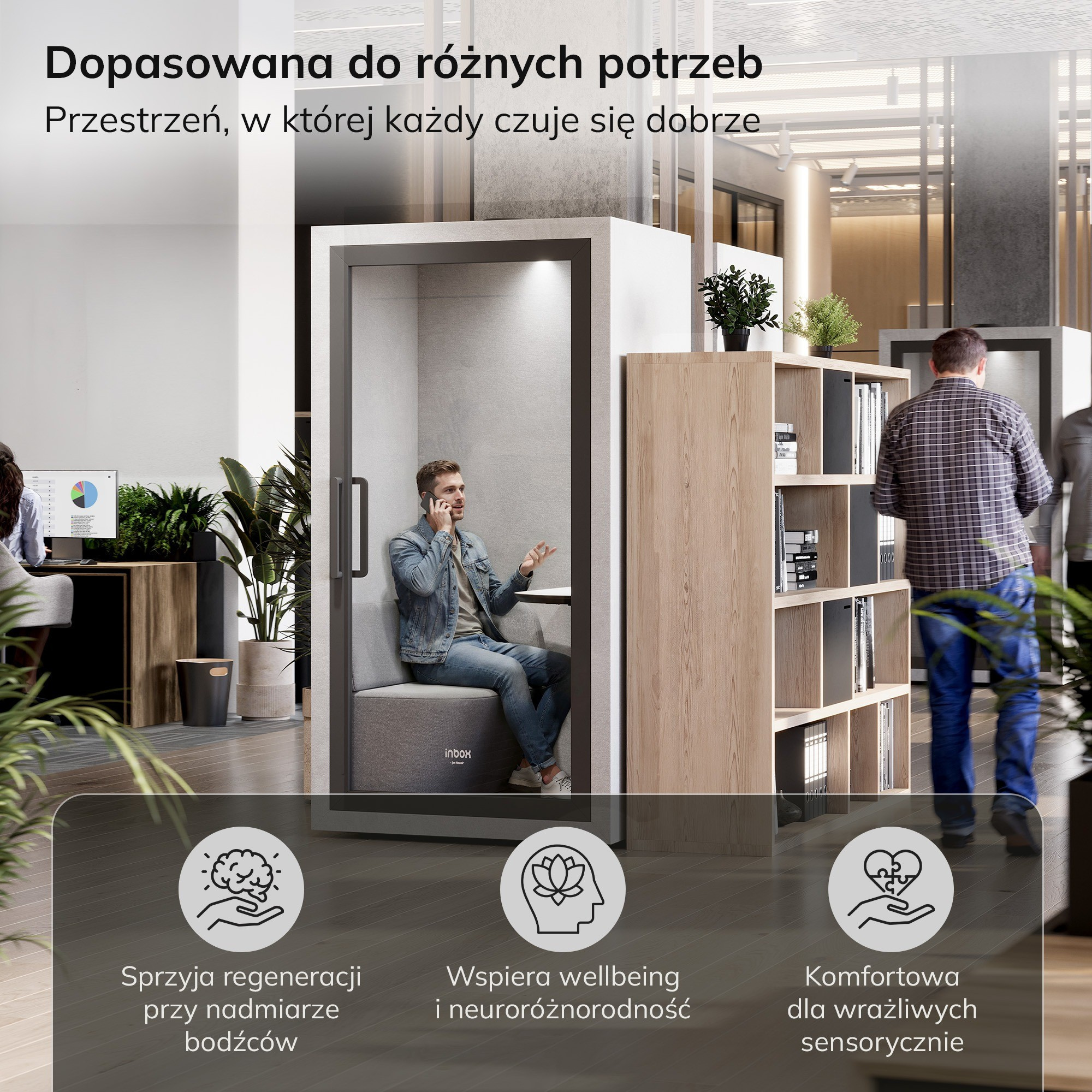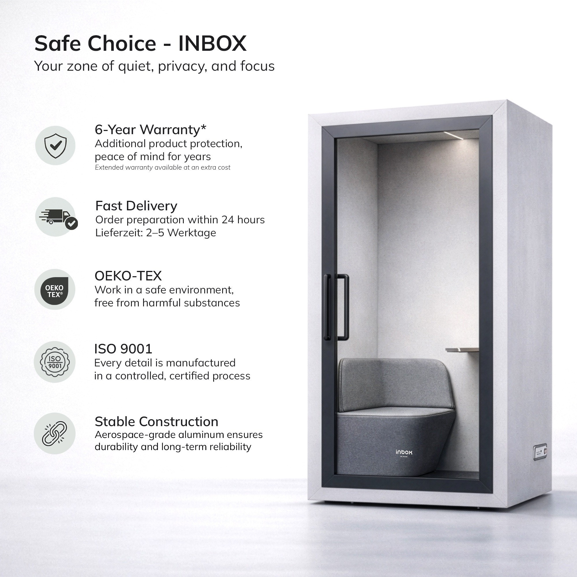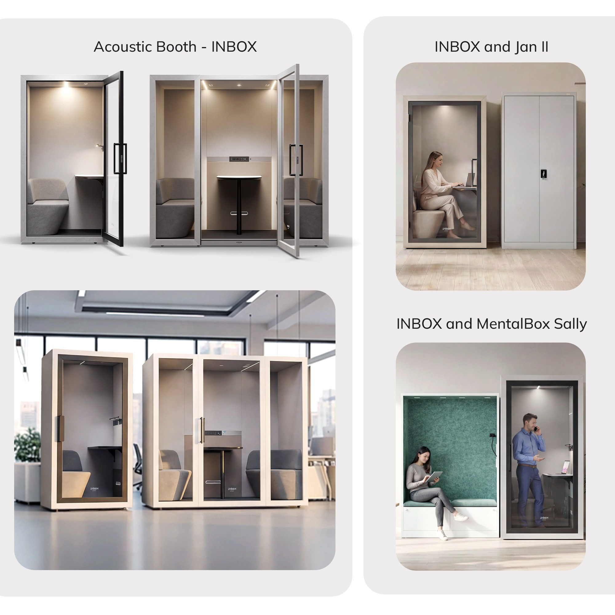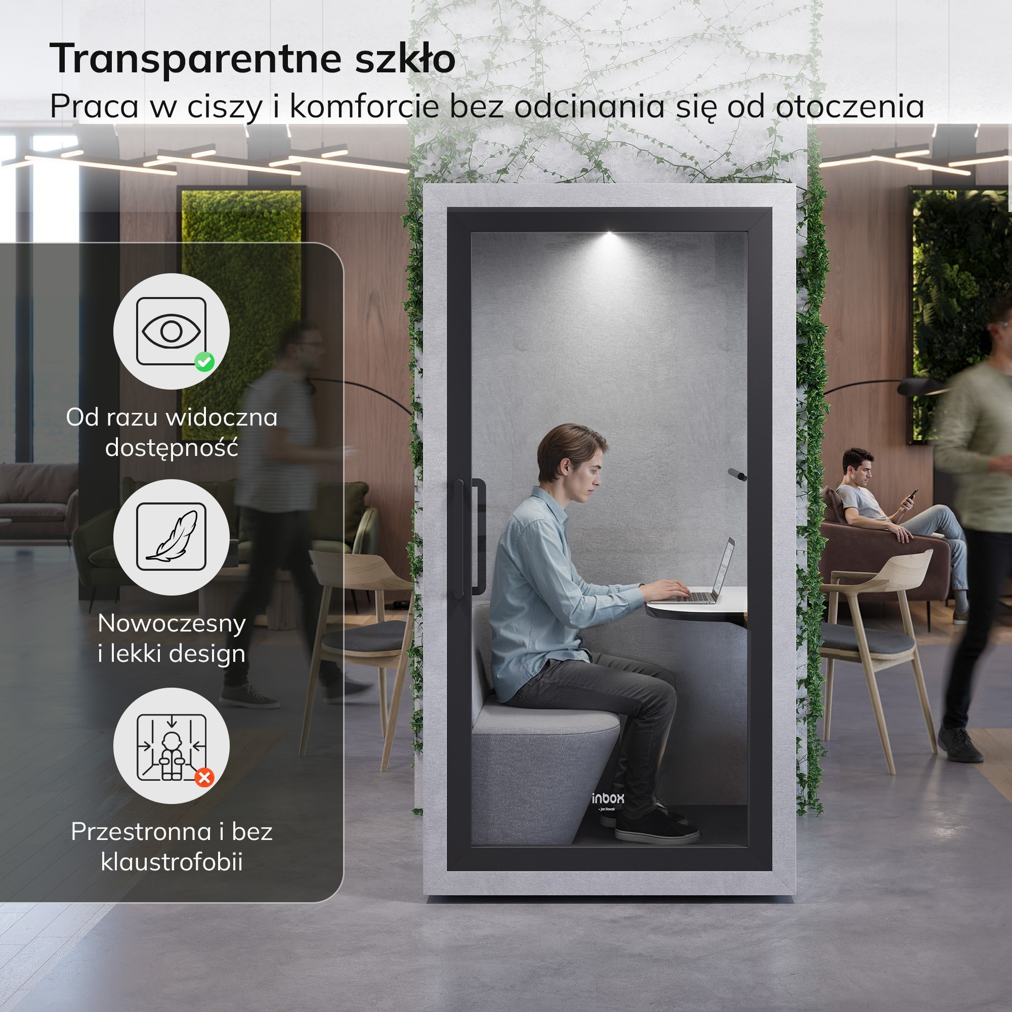Akustická budka do kanceláře INBOX 1-osobová 2100 x 1100 x 900 mm