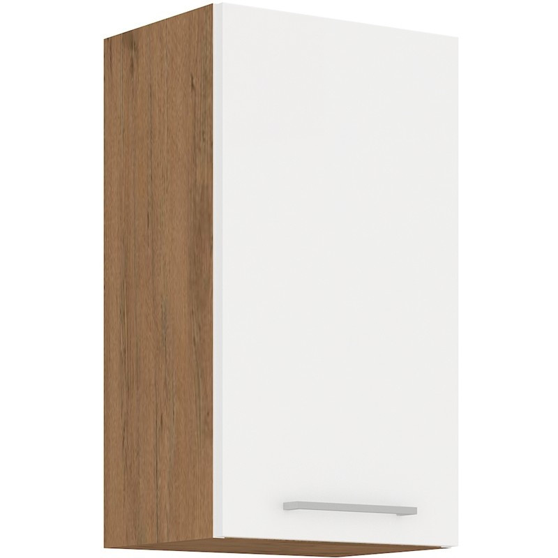 Vrchní kuchyňská skříňka 45G-72-1F je vyrobena z lamina v dekoru dub lancelot v kombinaci s vysokým leskem. Prohlédněte si širokou nabídku skříněk a vytvořte si kuchyň dle vlastních představ. Může být rohová, rovná, krátká i dlouhá. Fantazii se meze nekladou. V doplňkových fotografiích najdete pro inspiraci fotky kuchyní, které jsou z těchto skříněk sestaveny. Skříňka je dodávaná v demontu. Součástí je montážní plánek včetně všech potřebných spojovacích materiálů.