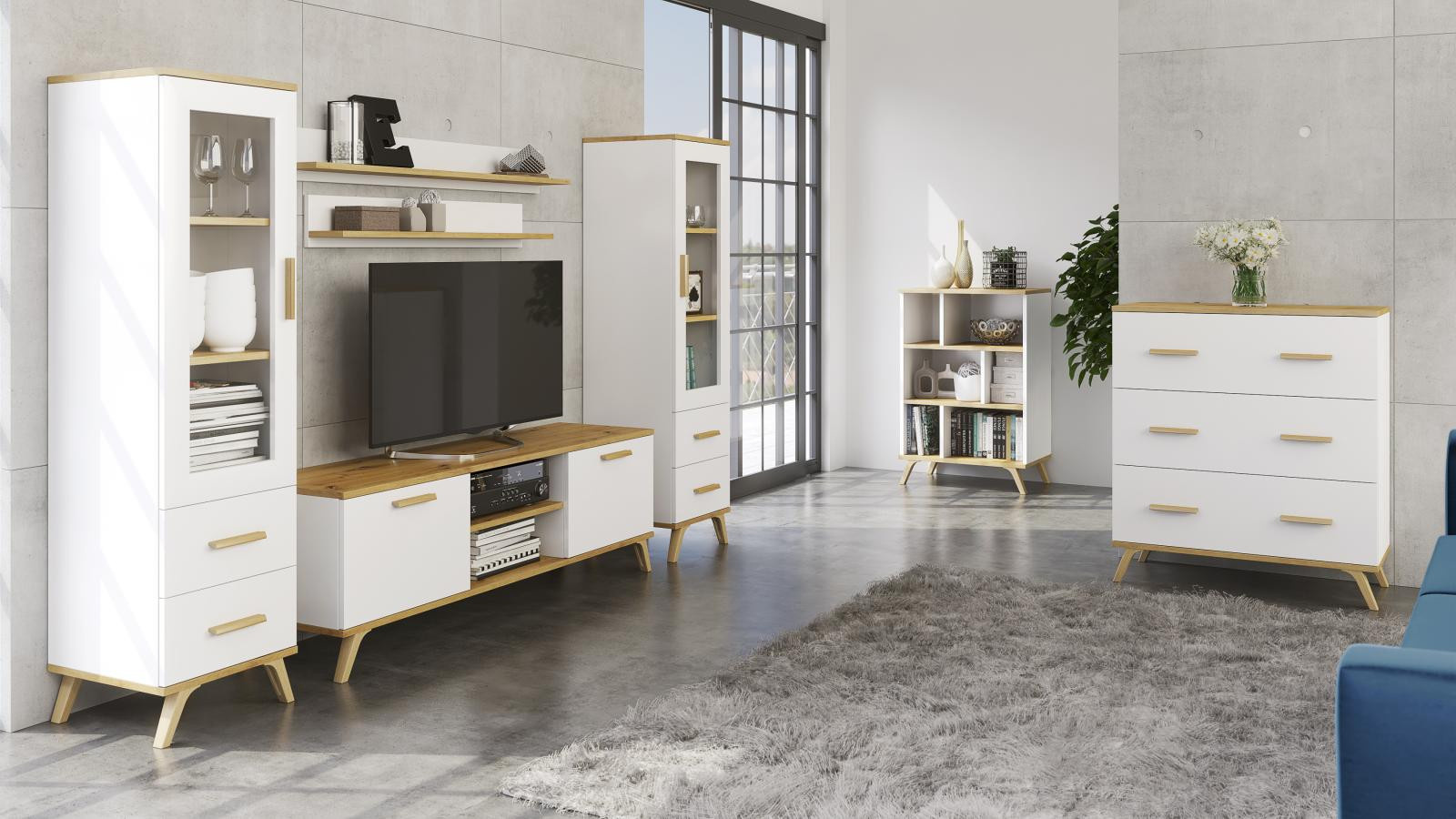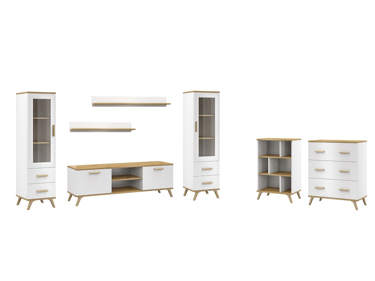 Roky je moderní bytová sestava v kombinaci 2 módních barev bílá a dub artisan. Je vyrobena z vysoce kvalitní laminované dřevotřísky tloušťky 18 mm, odolné vůči poškrábání, vlhkosti a vysokým teplotám. Všechny hrany jsou opatřeny ABS lištou, která zajistí trvanlivost a odolnost proti nárazu. Díky této bytové stěně budete mít pohodlný i praktický interiér a také útulné a bezpečné prostředí, ve kterém se každý bude cítit dobře. Veškeré díly, které tato sestava obsahuje, si můžete objednat samostatně. Všechny prvky této sestavy jsou dodávány v demontu. Součástí je montážní plánek včetně všech potřebných spojovacích materiálů. Vyobrazené dekorace nejsou v ceně.
