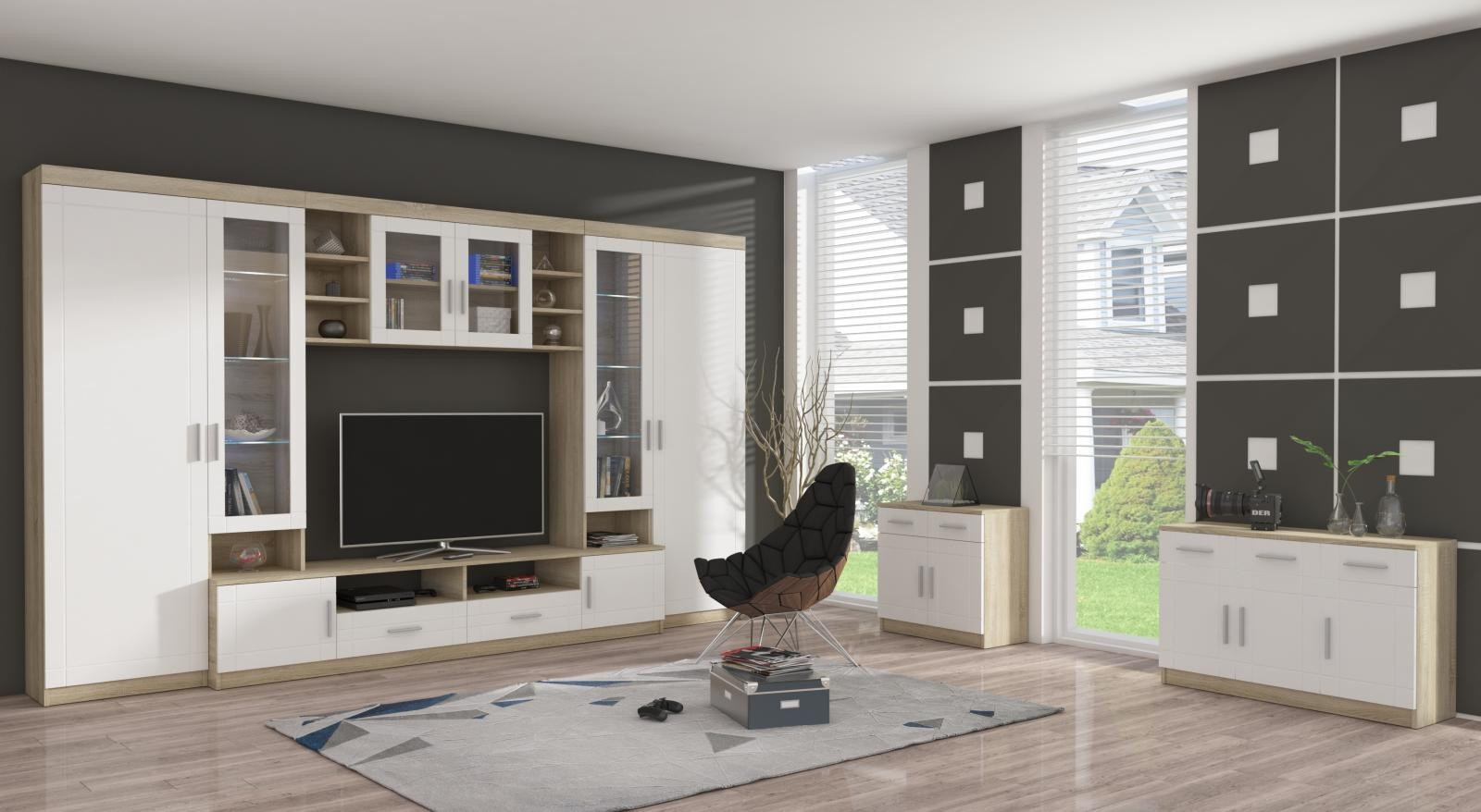 Bytová stěna Parker v moderním designu díky svému uspořádání maximálně využije veškerý dostupný prostoru. Je vyrobená z kvalitního a snadno udržovatelného lamina, prosklená dvířka dodávají sestavě lehkost. Série Parker obsahuje také komody ve více velikostech a barevných variantách, které díky univerzálnosti můžete použit v jakékoliv místnosti vašeho bytu či domu.