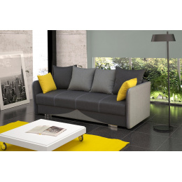 Moderní pohovka se snadným rozkladem pomocí automatu a úložným prostorem. Pohodlné sezení Vám zajistí kombinace pružin faliste a bonell s kvalitní PUR pěnou. Jednoduchým rozkladem pomocí automatu vznikne lůžko vhodné k příležitostnému spaní. Pohovku dodáváme v několika barevných provedeních, které také naleznete v naší nabídce. V ceně pohovky jsou 4 velké opěrné polštáře a dva malé žluté polštářky. Ostatní vyobrazené dekorace nejsou v ceně.