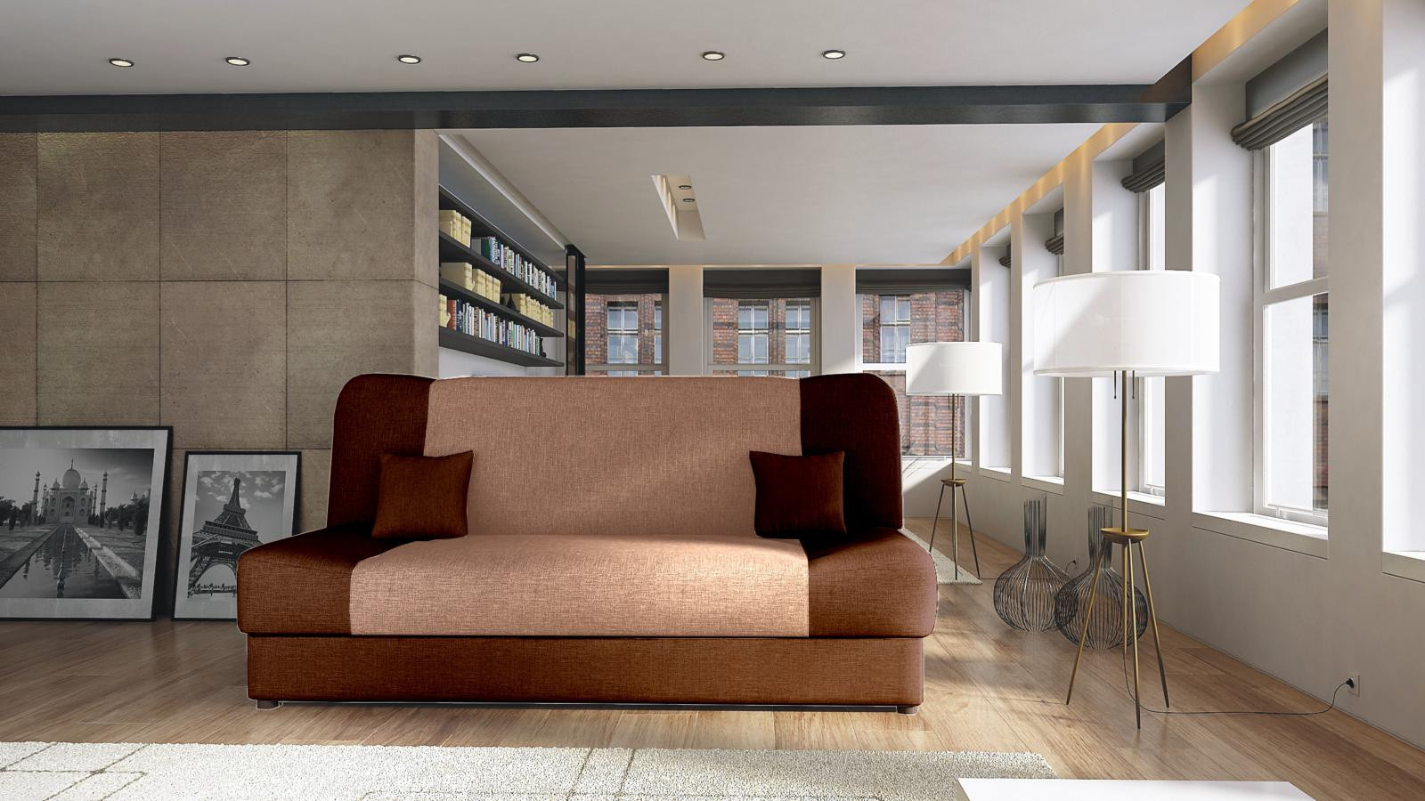 Rozkládací pohovka s kvalitním jádrem tvořeným vinutými pružinami a PUR pěnou je příjemným spojením elegantního designu, funkčnosti a atraktivní ceny. Disponuje praktickým úložným prostorem na přikrývky o velikosti 170x73 cm. Díky rozkládací konstrukci ji snadno přeměníte na lůžko o rozměrech 195x120 cm, které můžete kdykoliv nabídnout hostům, kteří u vás zůstanou přes noc.