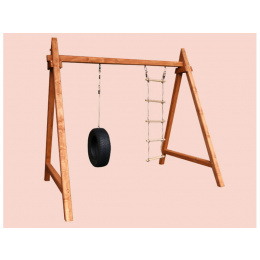 Dětské zahardní hřiště z masívu s lezeckou stěnou a skluzavkou. Hřiště se používá na zahradách pro zpestření dětských dní a rozvíjení dětské obratnosti a procvičování motorické zručnosti.