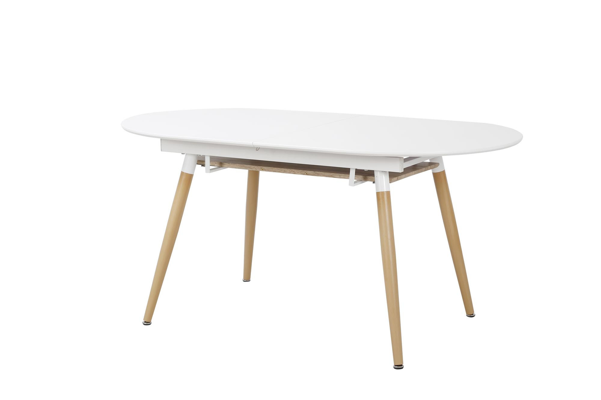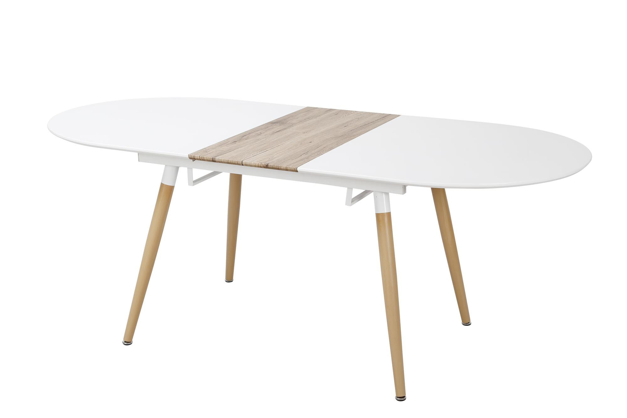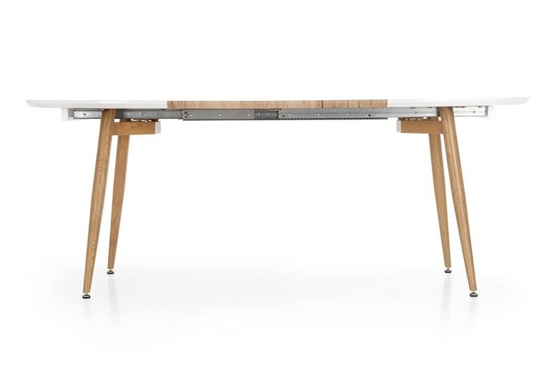 rozkládací stůl, rozměry: 160-200/90/76 cm, materiál: MDF lakovaná / MDF laminovaná / ocel lakovaná, barva: bílá matná - dub san remo