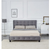 Rozměry: - celková délka: 218 cm - celková šířka: 170 cm - výška (bez matrace): 31 cm - výška čela: 107 cm - plocha na spaní: 160x200 cm Materiál: - látka: samet - rám: kov lakovaný práškovou barvou - lamely: pružné z překližky - nohy: dřevěné Ostatní: - rošt v sadě - počet lamel: po 16 ks ve dvou řadách - postel prodávána bez matrace Barva: - čalounění: šedá - nohy: černá