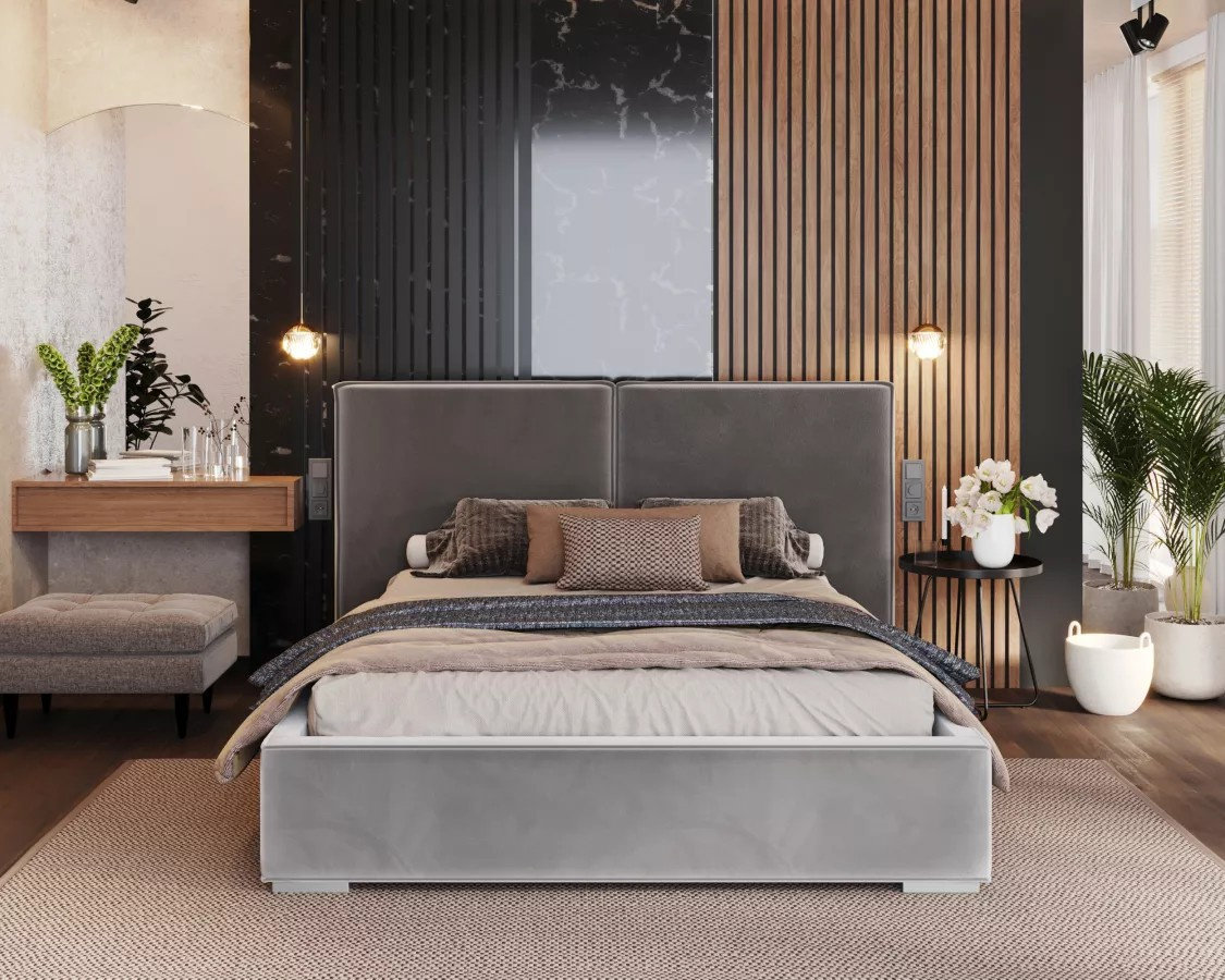 Čalouněná postel DOVER Pohodlná a přizpůsobená postel je zárukou dobře strávené noci. Ovlivní to nejen kvalitu spánku, ale také estetiku ložnice a vnímání místnosti. Hledáte-li originální řešení, stojí za to věnovat pozornost čalouněné posteli DOVER. Model zaujme zajímavým designem a funkčními řešeními. Čalouněná postel DOVER se dokonale hodí do nejnovějších trendů – skvěle se uplatní v ložnicích zařízených v moderním nebo minimalistickém stylu. Pozornost přitahuje především široké čelo postele, které dokonale přiléhá ke zdi a dodává interiéru neotřelý charakter. Jeho každodenní používání významně ovlivní vaši pohodu a způsobí, že každý den začne perfektně. Plochý čelo postele DOVER má klasický tvar a jeho minimalismus narušuje viditelné, módní prošívání.