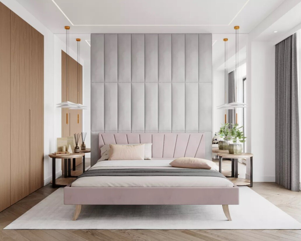 Trinity je ideální látka pro čalounění postelí v ložnici. Je to plyšová tkanina, měkká a jemná na dotek.