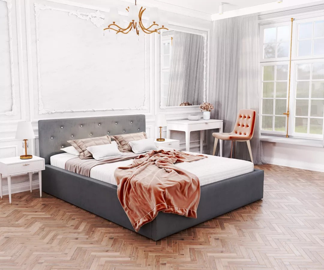 Čalouněná postel MIRAGE - TRINITY Ložnice je místem, kde by každá strávená chvíle měla přinášet pozitivní emoce. Musí také dobře vypadat a být užitečná. S čalouněnou postelí MIRAGE je to možné, protože díky svému nadčasovému designu, skvělé funkčnosti a atraktivnímu provedení vypadá v ložnici dokonale. Každá noc strávená na ní přináší mnoho pozitivních dojmů a samotná postel je příjemná na pohled. Navíc je velmi praktická.