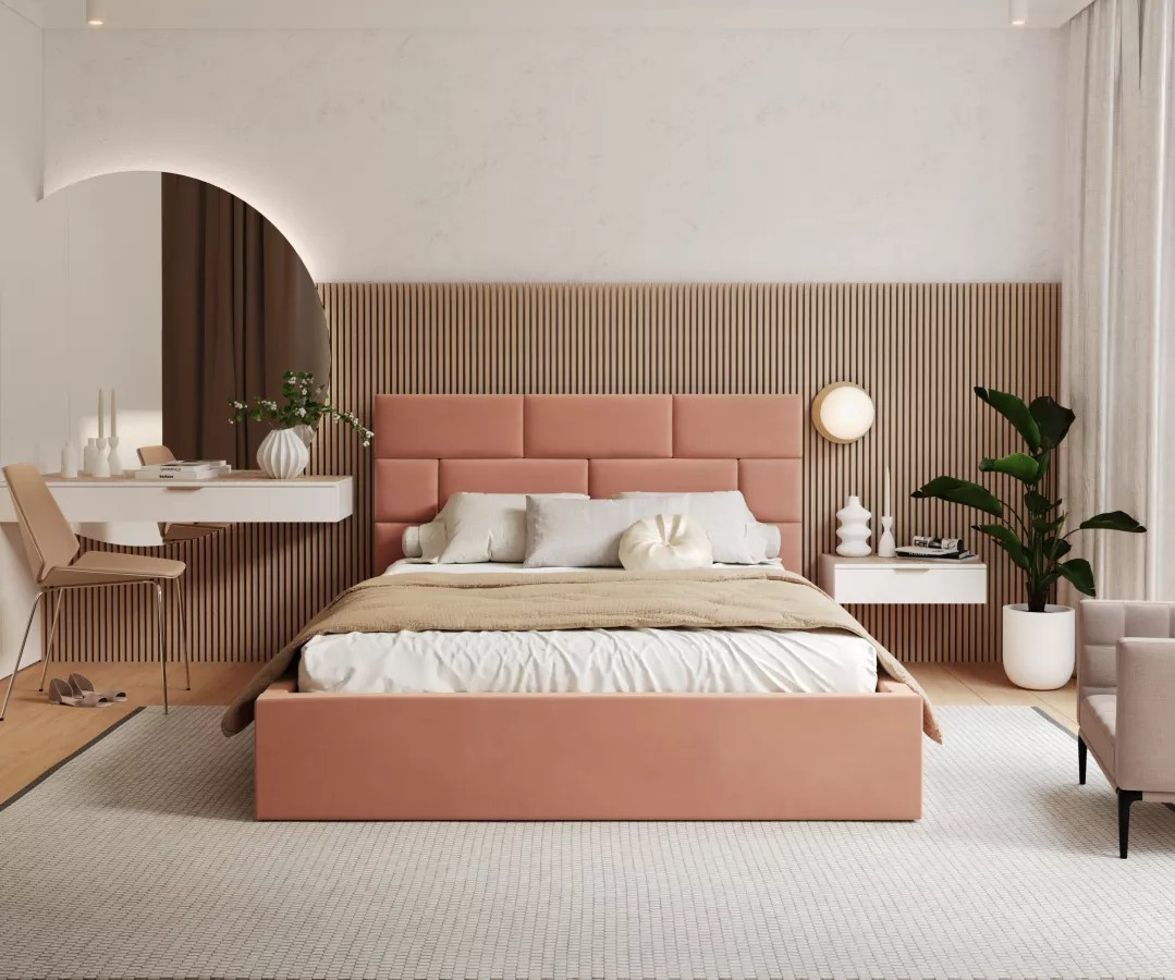Čalouněná postel PASADENA Ložnice je místem, kde by každá strávená chvíle měla přinášet pozitivní emoce. Musí také dobře vypadat a být užitečná. To je možné s čalouněnou postelí PASADENA, protože její nadčasový design i vysoká funkčnost a atraktivní povrchová úprava ji předurčují k tomu, aby se do ložnice skvěle hodila. Každá noc strávená na ní přináší mnoho pozitivních dojmů a samotná postel je příjemná na pohled. Navíc je velmi praktická.