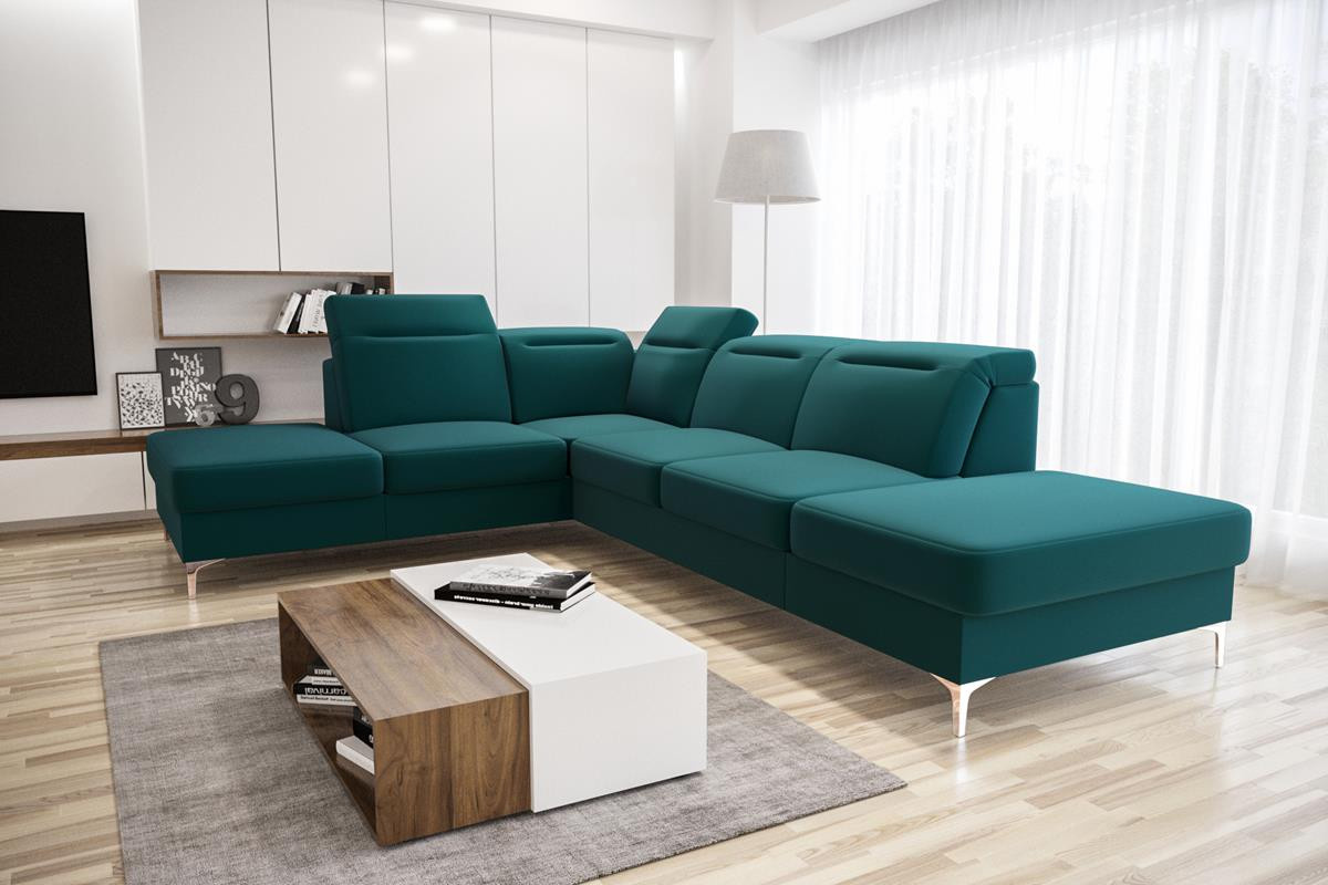 Rohová sedačka má nastavitelné, vícestupňové opěrky hlavy, chromované ozdobné nožky, sedáky s ozdobným prošíváním a především je vyrobena na vlnitých pružinách a vysoce elastické pěně, což zajišťuje vysoký komfort používání a zabraňuje deformaci nejčastěji používaných ploch. POZOR!!! Na aranžmá je zobrazen rohový gauč bez funkce spaní.