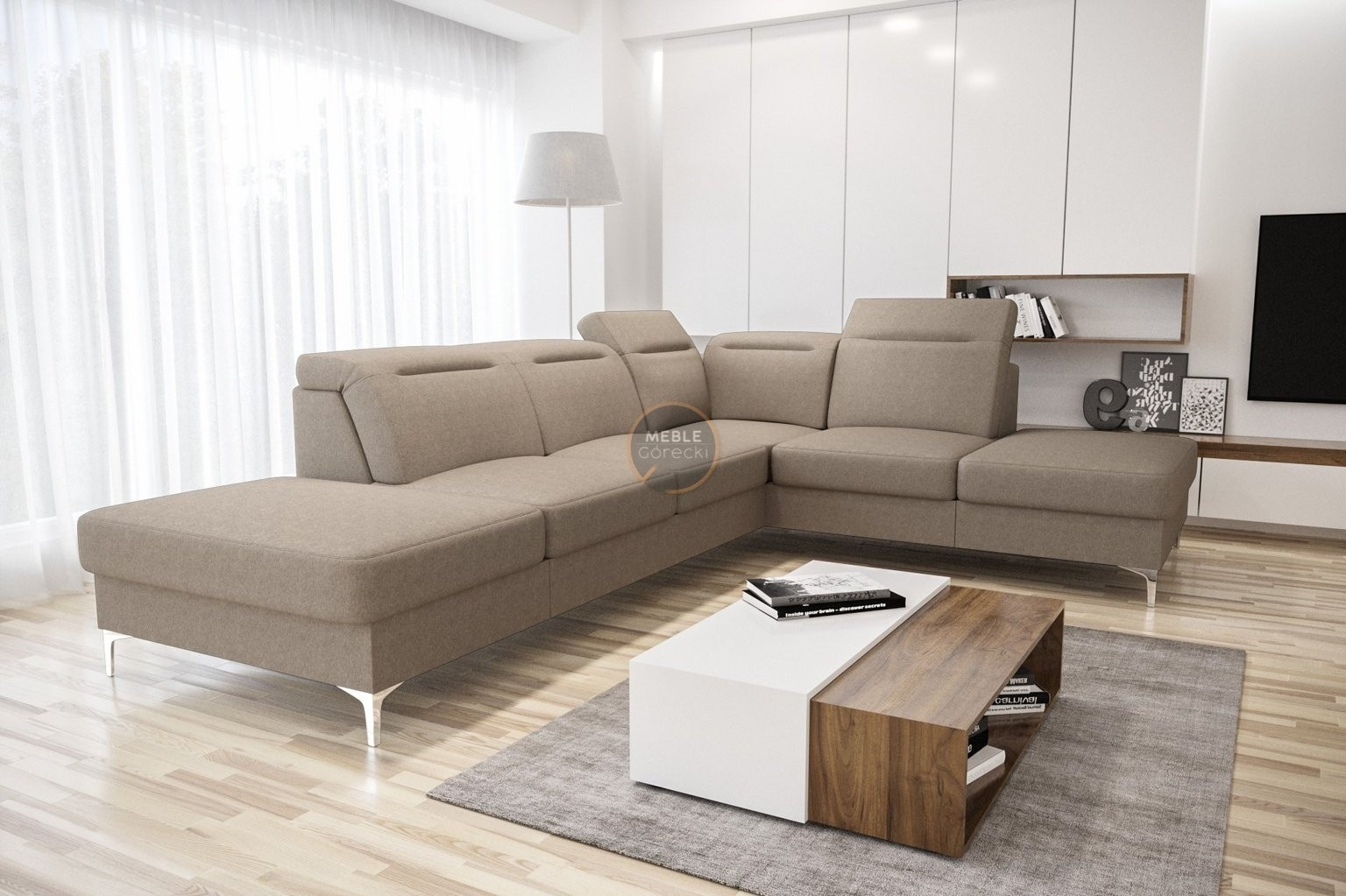 Rohová sedačka má nastavitelné, vícestupňové opěrky hlavy, chromované ozdobné nožky, sedáky s ozdobným prošíváním a především je vyrobena na vlnitých pružinách a vysoce elastické pěně, což zajišťuje vysoký komfort používání a zabraňuje deformaci nejčastěji používaných ploch. POZOR!!! Na aranžmá je zobrazen rohový gauč bez funkce spaní.