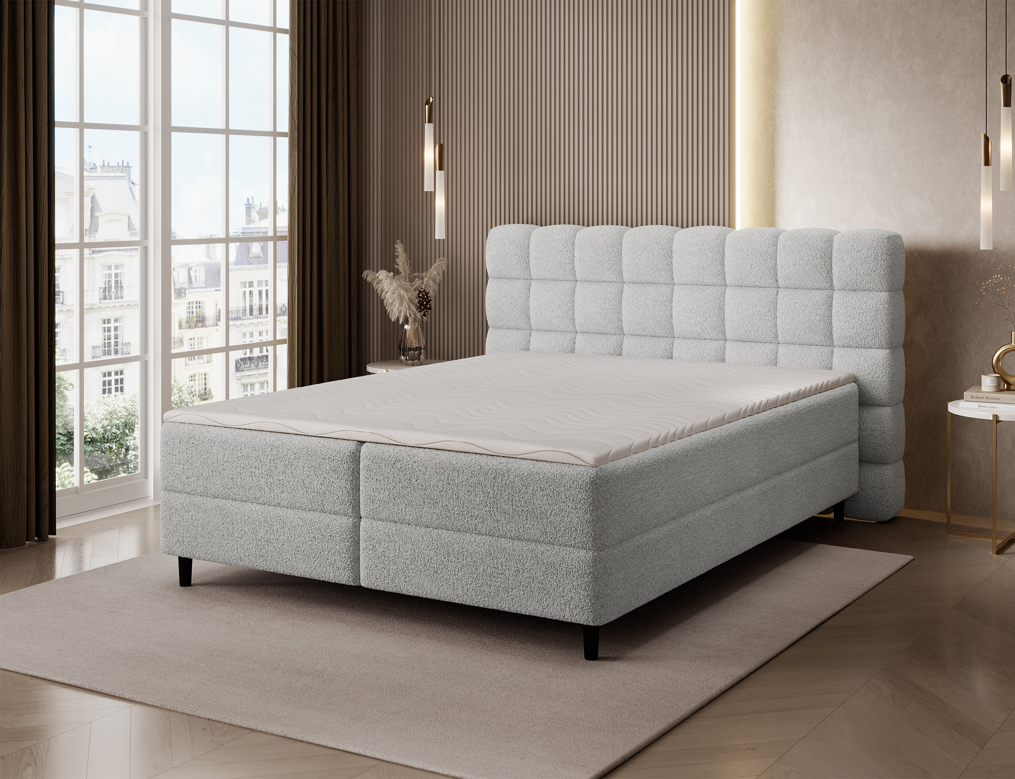 Kontinentální postel Camma kombinuje moderní design, funkčnost a vynikající spací komfort, což z ní činí ideální volbu pro elegantní a praktickou ložnici; je dostupná ve třech velikostech – 140x200 cm, 160x200 cm a 180x200 cm – a dokonale se přizpůsobí jak prostoru, tak individuálním potřebám, zatímco její pevná konstrukce s celkovou výškou 102 cm a výškou sedu 56 cm zajišťuje každodenní pohodlí; postel má hloubku 222 cm a šířka závisí na zvoleném modelu – 162 cm, 182 cm nebo 202 cm – což jí dodává stabilní a impozantní vzhled, který přidává luxusní nádech každému interiéru; čalouněná vysoce kvalitní látkou s jemným dotykem a stylově prošívaným čelem, kombinuje moderní eleganci s pohodlnou oporou pro čtení nebo relaxaci; praktický úložný box poskytuje prostor pro ložní prádlo a pomáhá udržovat ložnici uklizenou, což činí postel Camma nejen pohodlnou, ale také vysoce funkční; design je doplněn 10 cm černými dřevěnými nohami, které přidávají vizuální lehkost a usnadňují úklid pod postelí; model Camma je ideální volbou pro ty, kteří si cení moderního stylu, elegance, odolnosti a pohodlí, zajišťujícího zdravý a klidný spánek každou noc.