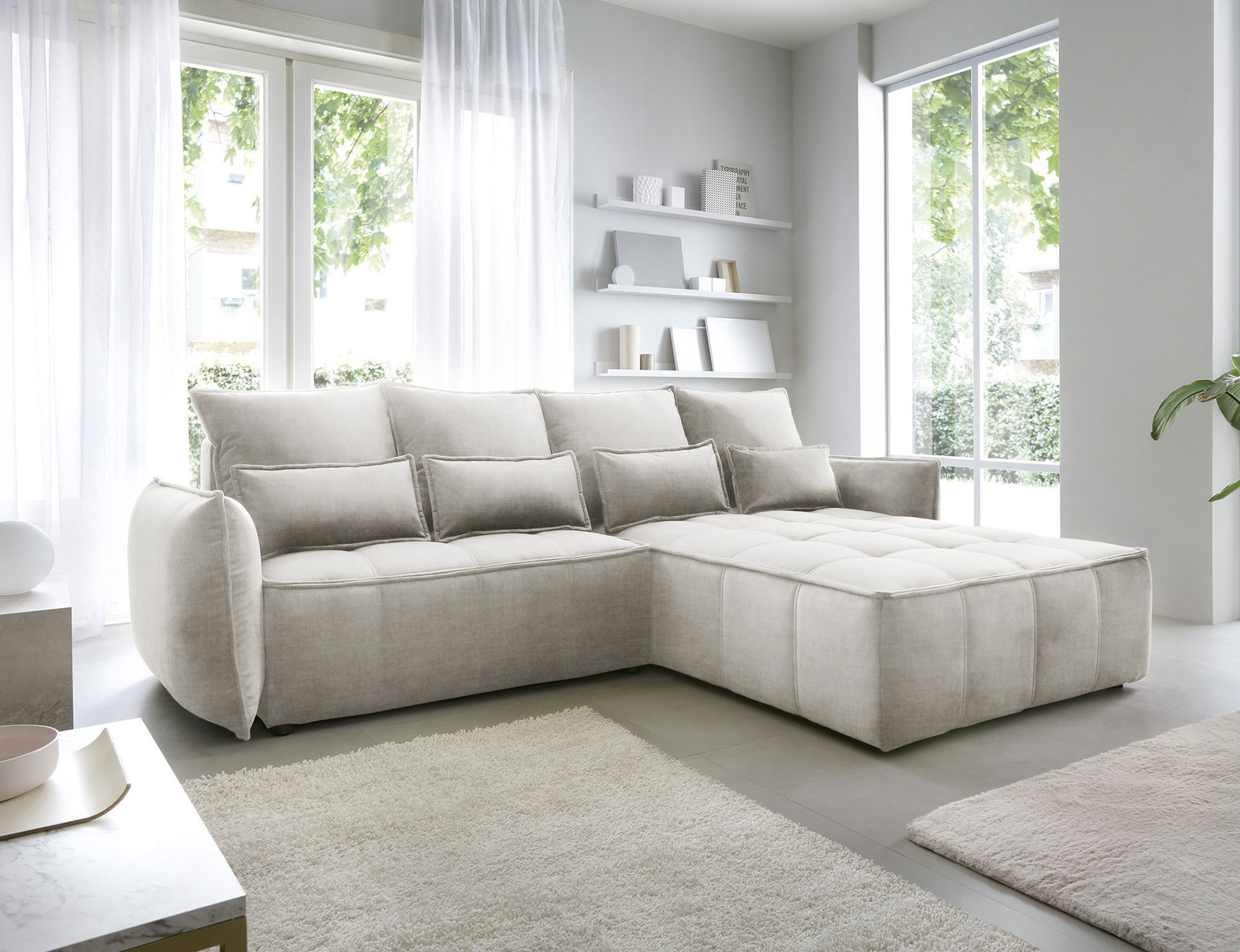 Rohová pohovka Campo, měřící 265x196x88 cm, je elegantní a funkční kus nábytku s úložným prostorem na ložní prádlo (97x60x15 cm). Vybaveno 4 polštáři na opěradlo a 4 bederními polštáři, poskytuje pohodlí a oporu pro záda. Produkt je dostupný pouze ve vybraných látkách z kolekce ELTAP. Rohová pohovka Campo je vynikající volbou pro ty, kteří si cení pohodlí, funkčnosti a elegantního designu. Díky svému promyšlenému designu a dalším polštářům nabízí pohodlné místo k odpočinku a úložný prostor pomáhá udržovat věci uspořádané. Možnost výběru z vybraných látek umožňuje vytvořit kus nábytku, který dokonale doplňuje zbytek interiéru.