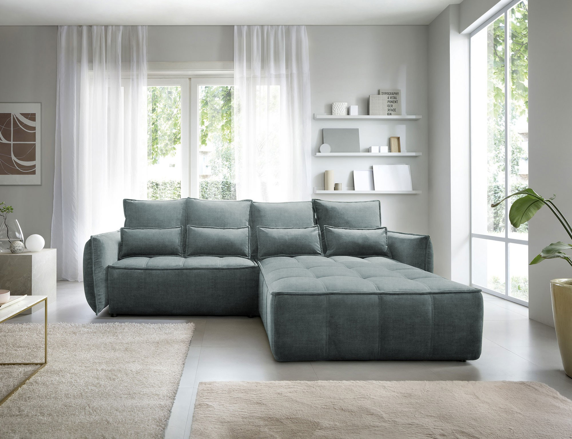 Rohová pohovka Campo, měřící 265x196x88 cm, je elegantní a funkční kus nábytku s úložným prostorem na ložní prádlo (97x60x15 cm). Vybaveno 4 polštáři na opěradlo a 4 bederními polštáři, poskytuje pohodlí a oporu pro záda. Produkt je dostupný pouze ve vybraných látkách z kolekce ELTAP. Rohová pohovka Campo je vynikající volbou pro ty, kteří si cení pohodlí, funkčnosti a elegantního designu. Díky svému promyšlenému designu a dalším polštářům nabízí pohodlné místo k odpočinku a úložný prostor pomáhá udržovat věci uspořádané. Možnost výběru z vybraných látek umožňuje vytvořit kus nábytku, který dokonale doplňuje zbytek interiéru.