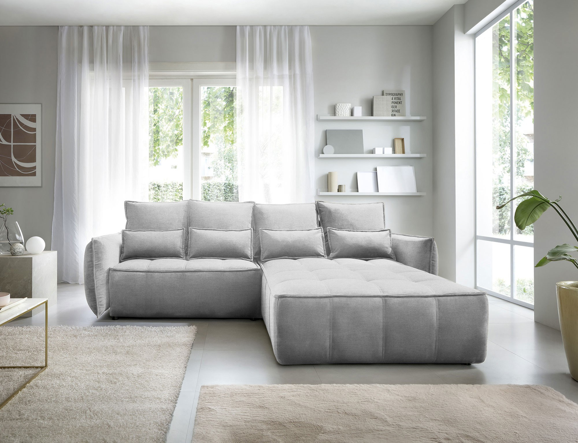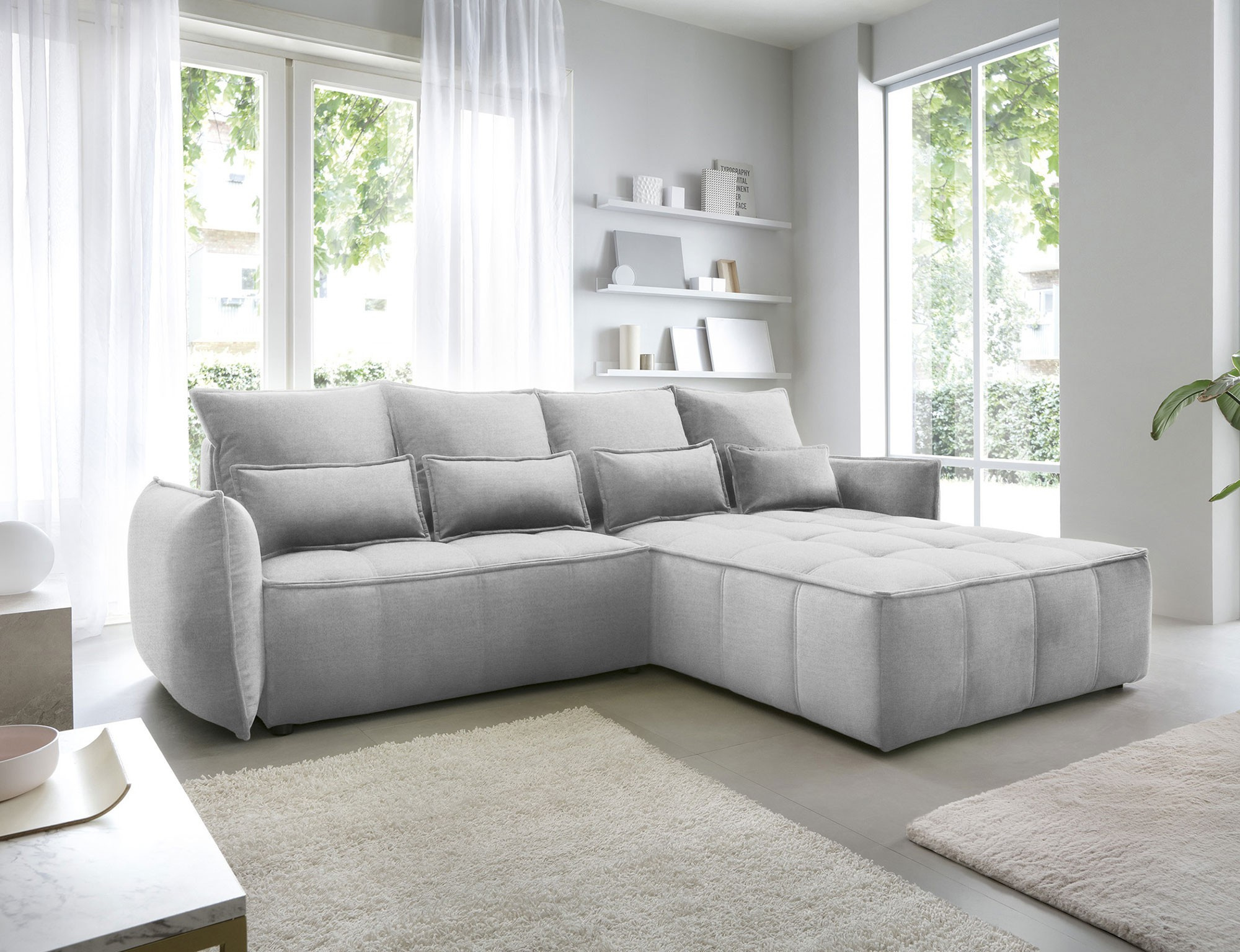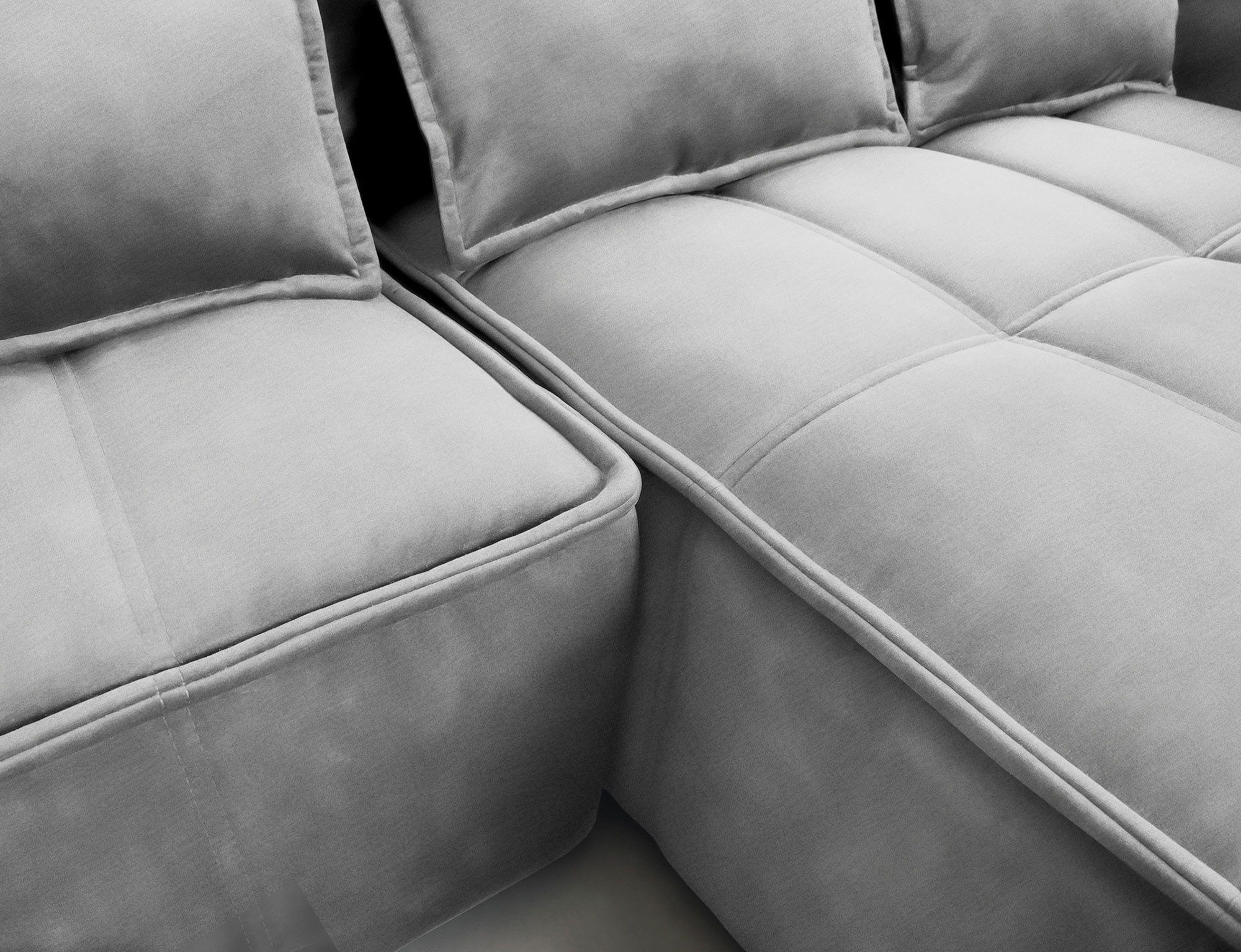 Rohová pohovka Campo, měřící 265x196x88 cm, je elegantní a funkční kus nábytku s úložným prostorem na ložní prádlo (97x60x15 cm). Vybaveno 4 polštáři na opěradlo a 4 bederními polštáři, poskytuje pohodlí a oporu pro záda. Produkt je dostupný pouze ve vybraných látkách z kolekce ELTAP. Rohová pohovka Campo je vynikající volbou pro ty, kteří si cení pohodlí, funkčnosti a elegantního designu. Díky svému promyšlenému designu a dalším polštářům nabízí pohodlné místo k odpočinku a úložný prostor pomáhá udržovat věci uspořádané. Možnost výběru z vybraných látek umožňuje vytvořit kus nábytku, který dokonale doplňuje zbytek interiéru.