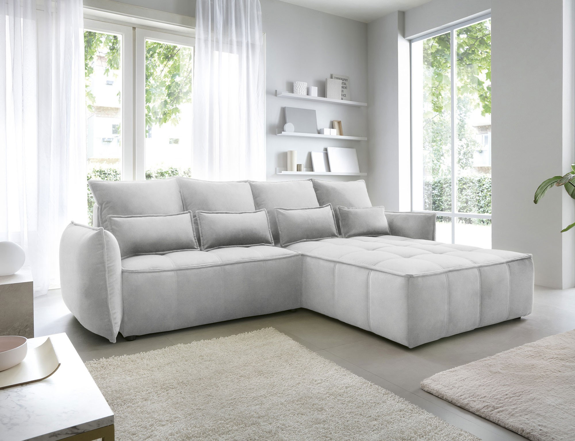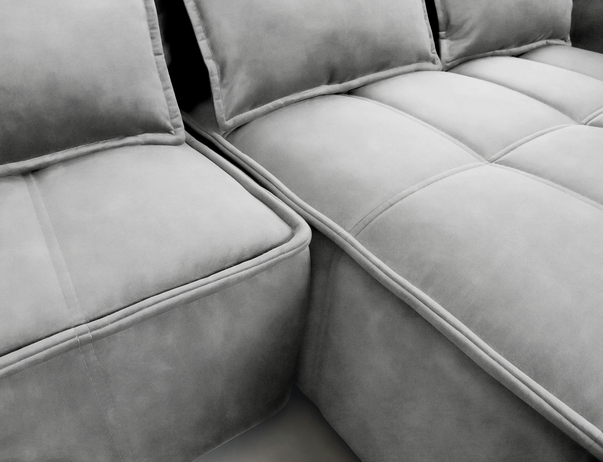 Rohová pohovka Campo, měřící 265x196x88 cm, je elegantní a funkční kus nábytku s úložným prostorem na ložní prádlo (97x60x15 cm). Vybaveno 4 polštáři na opěradlo a 4 bederními polštáři, poskytuje pohodlí a oporu pro záda. Produkt je dostupný pouze ve vybraných látkách z kolekce ELTAP. Rohová pohovka Campo je vynikající volbou pro ty, kteří si cení pohodlí, funkčnosti a elegantního designu. Díky svému promyšlenému designu a dalším polštářům nabízí pohodlné místo k odpočinku a úložný prostor pomáhá udržovat věci uspořádané. Možnost výběru z vybraných látek umožňuje vytvořit kus nábytku, který dokonale doplňuje zbytek interiéru.