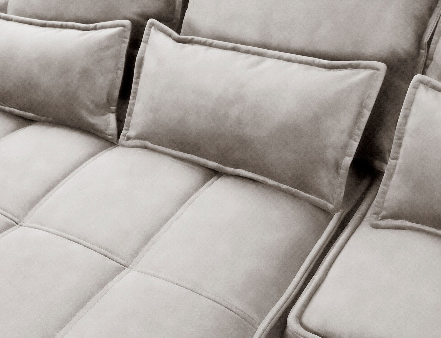 Rohová pohovka Campo, měřící 265x196x88 cm, je elegantní a funkční kus nábytku s úložným prostorem na ložní prádlo (97x60x15 cm). Vybaveno 4 polštáři na opěradlo a 4 bederními polštáři, poskytuje pohodlí a oporu pro záda. Produkt je dostupný pouze ve vybraných látkách z kolekce ELTAP. Rohová pohovka Campo je vynikající volbou pro ty, kteří si cení pohodlí, funkčnosti a elegantního designu. Díky svému promyšlenému designu a dalším polštářům nabízí pohodlné místo k odpočinku a úložný prostor pomáhá udržovat věci uspořádané. Možnost výběru z vybraných látek umožňuje vytvořit kus nábytku, který dokonale doplňuje zbytek interiéru.