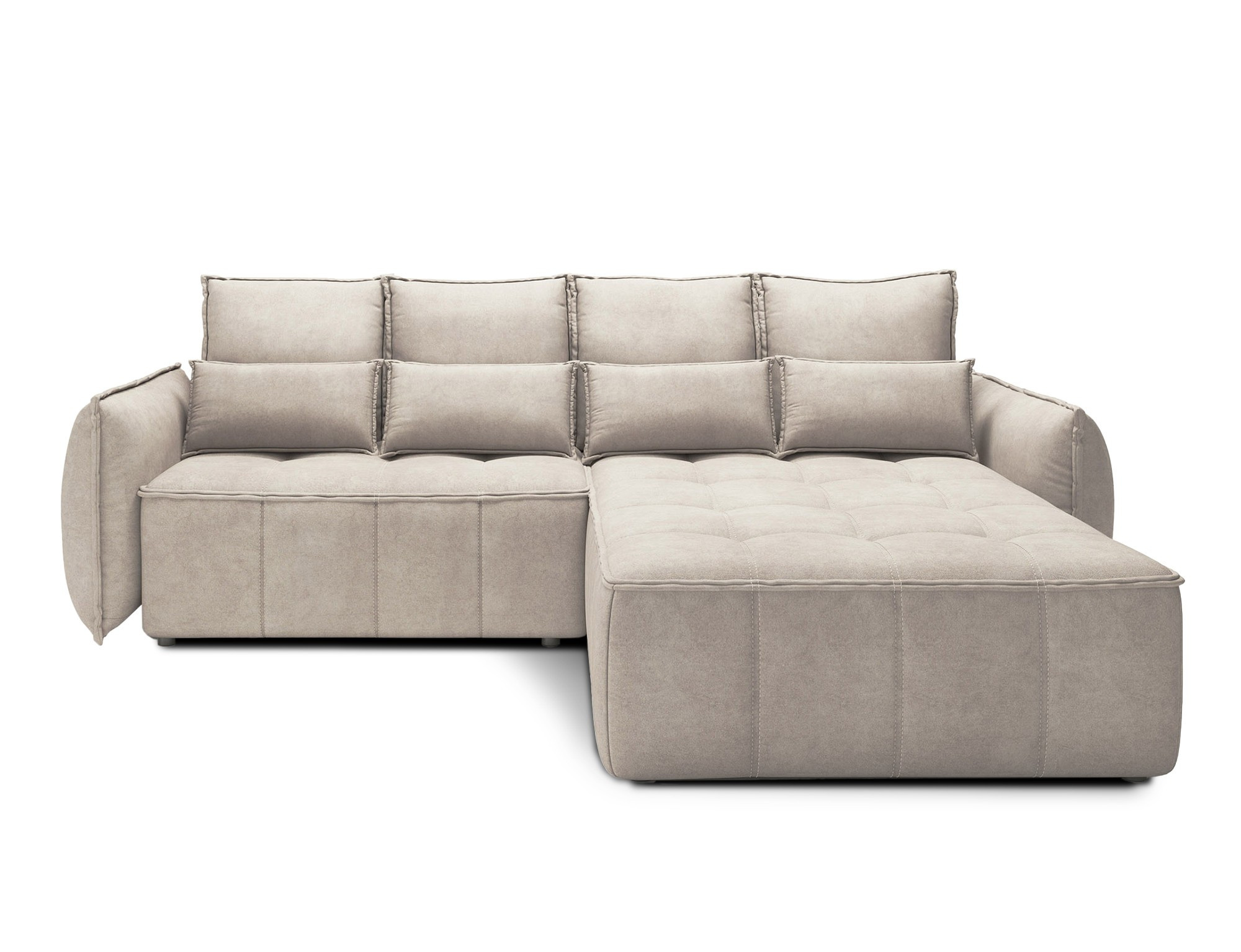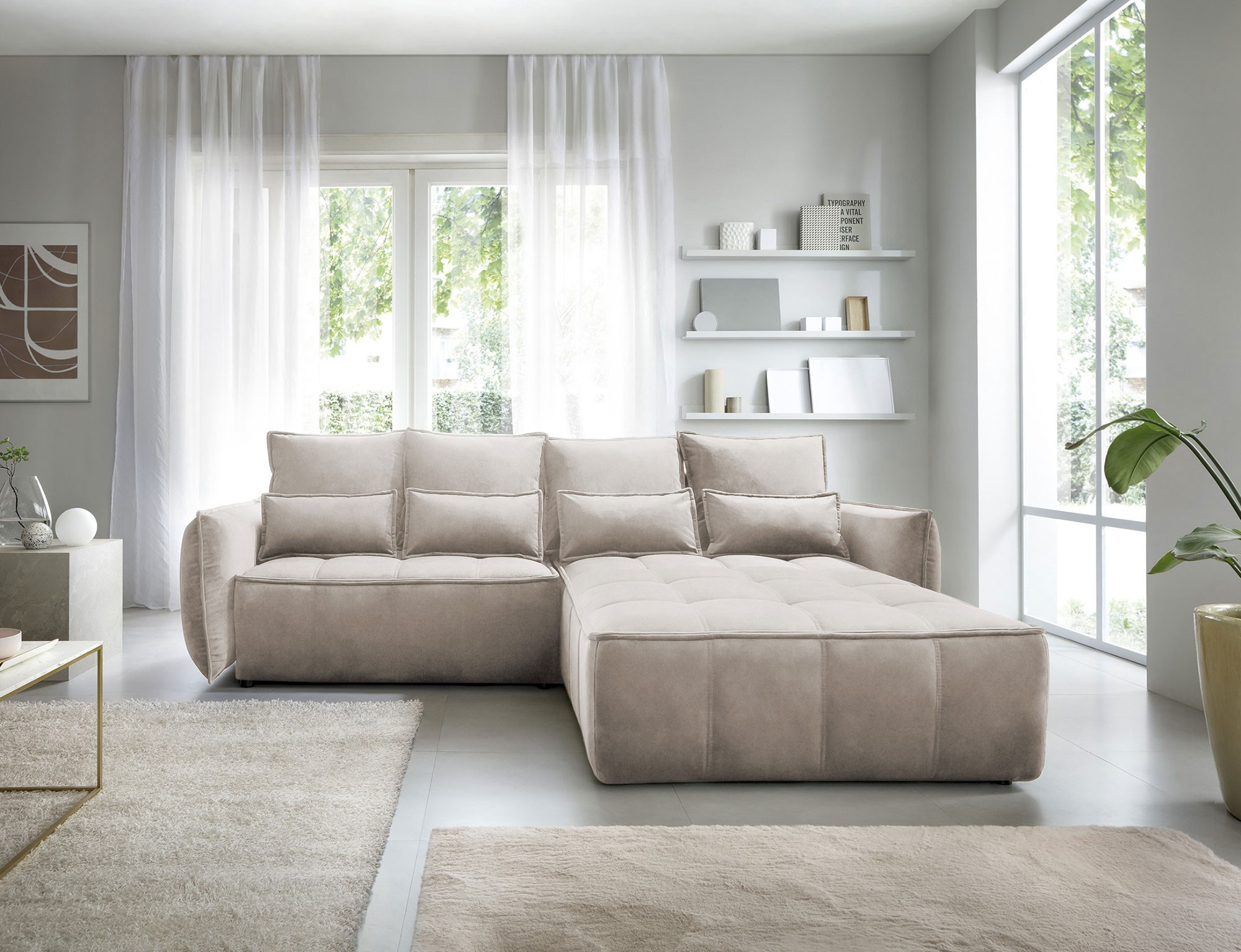 Rohová pohovka Campo, měřící 265x196x88 cm, je elegantní a funkční kus nábytku s úložným prostorem na ložní prádlo (97x60x15 cm). Vybaveno 4 polštáři na opěradlo a 4 bederními polštáři, poskytuje pohodlí a oporu pro záda. Produkt je dostupný pouze ve vybraných látkách z kolekce ELTAP. Rohová pohovka Campo je vynikající volbou pro ty, kteří si cení pohodlí, funkčnosti a elegantního designu. Díky svému promyšlenému designu a dalším polštářům nabízí pohodlné místo k odpočinku a úložný prostor pomáhá udržovat věci uspořádané. Možnost výběru z vybraných látek umožňuje vytvořit kus nábytku, který dokonale doplňuje zbytek interiéru.