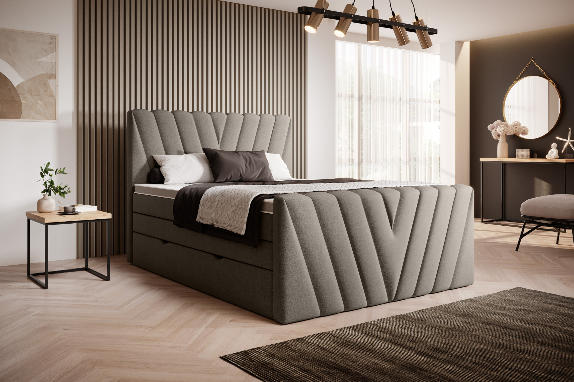 Kontinentální postel Candice přináší do ložnice odvahu díky čalounění, které je k dispozici v mnoha různých barvách z kolekce látek ELTAP. Kromě toho je produkt dostupný ve 3 velikostech spací plochy: 140/160/180x200 centimetrů. Boxspring Candice bude jistě atraktivním základem pro mnoho ložnic, protože je stylová a pohodlná. Čalouněné opěradlo tohoto kusu nábytku umožňuje jeho umístění v různých konfiguracích, dokonce i uprostřed místnosti. Další výhodou naší čalouněné postele jsou mimořádně pohodlné matrace zahrnuté v sadě.Jako boxspringová postel je Candice vybavena spodní matrací a horní matrací. První je vyplněn pěnou T25 a pružinami Bonnel. Tvrdost spodní matrace je H2/3, zatímco tvrdost horní matrace je H3. Navíc je topper této čalouněné postele oboustranný a vybavený zipem. To jistě usnadní udržování matrace v čistotě. Díky všem těmto prvkům je kontinentální postel Candice neuvěřitelně pohodlná a vypadá krásně v každém interiéru.