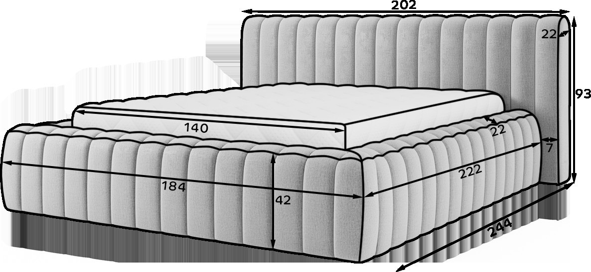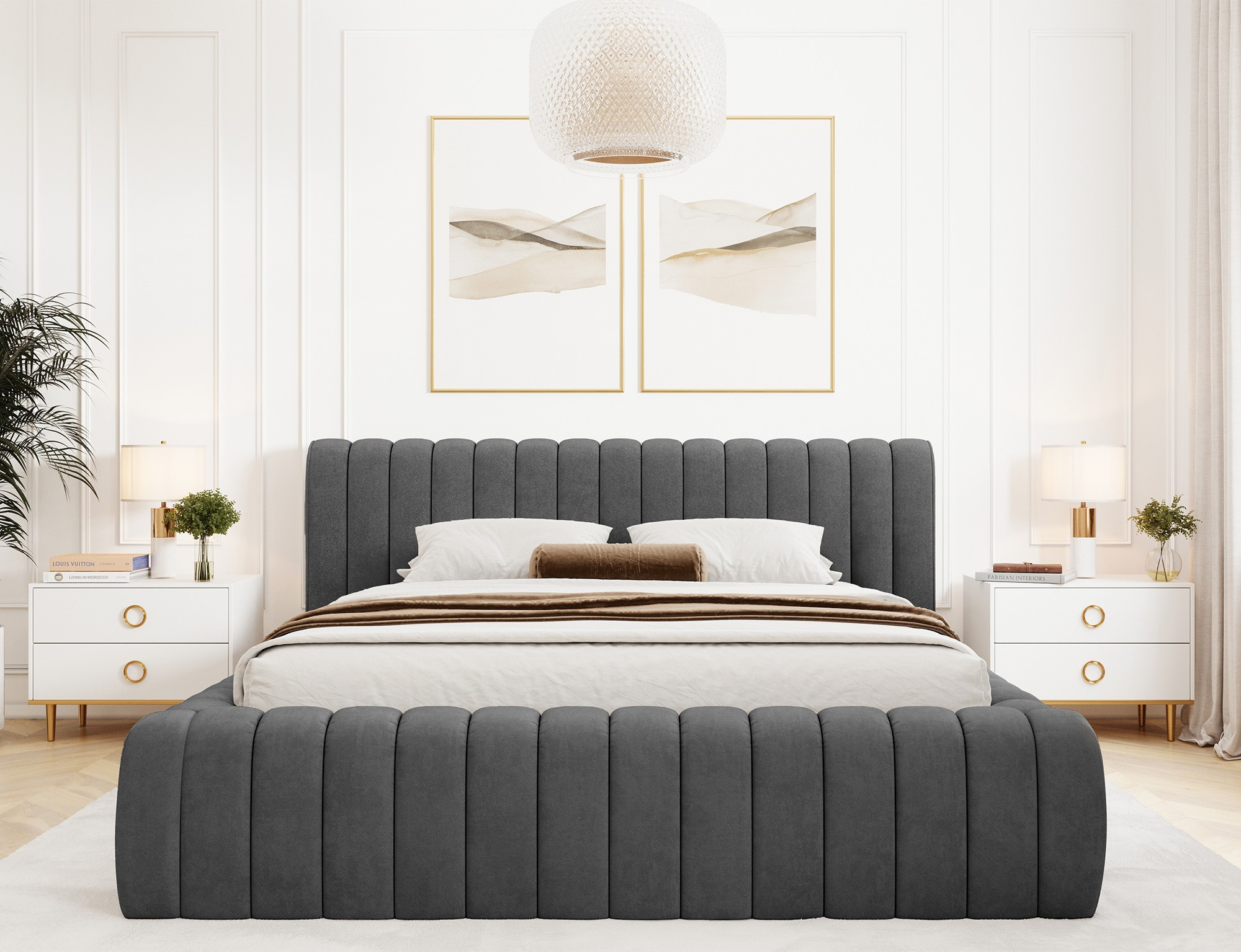 Postel Carilla je moderní a elegantní kus nábytku dostupný ve třech velikostech: 140x200 cm, 160x200 cm a 180x200 cm, který dokonale ladí se současnými trendy v interiéru. Jeho pohodlí je zajištěno vysoce kvalitní polyuretanovou pěnou ve výplni rámu a opěradla—T2130 a T2315—která poskytuje jak odolnost, tak útulnost. Jeho robustní konstrukce je podpořena kovovým rámem s 36 lamelami, což zajišťuje vynikající oporu matrace a klidný spánek. Design je dokončen černým kluzákem, který zvyšuje stabilitu i estetiku.
