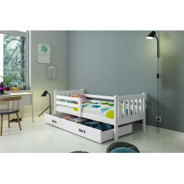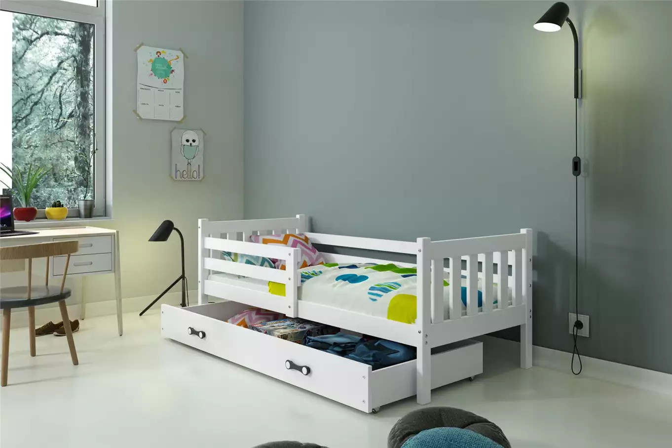 Dětská postel CARINO 90x200 cm se šuplíkem, s matrací, Bílá/Bílá