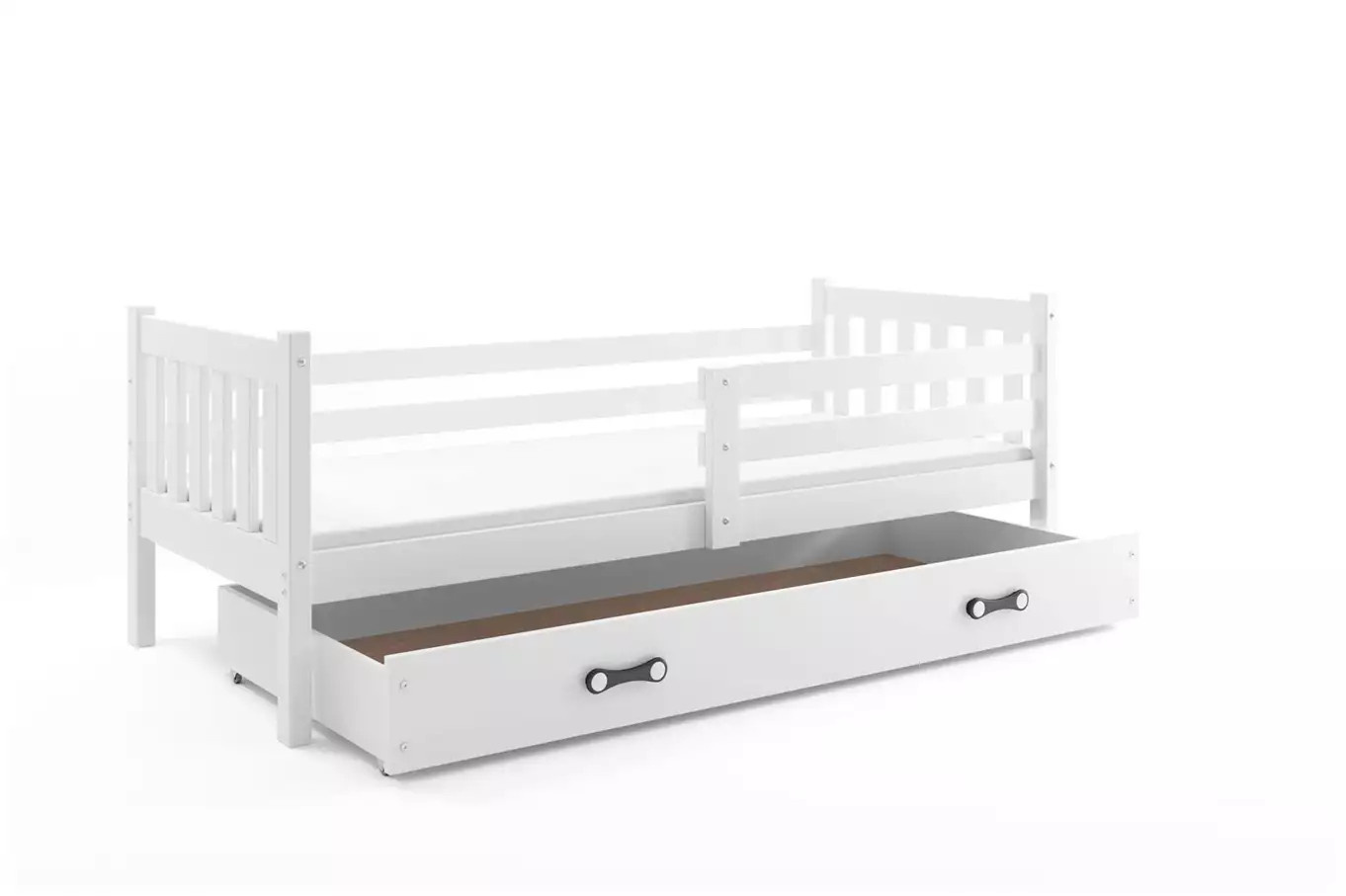 Dětská postel CARINO 90x200 cm se šuplíkem, bez matrace, Bílá/Bílá