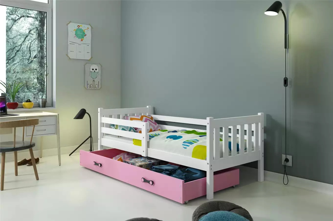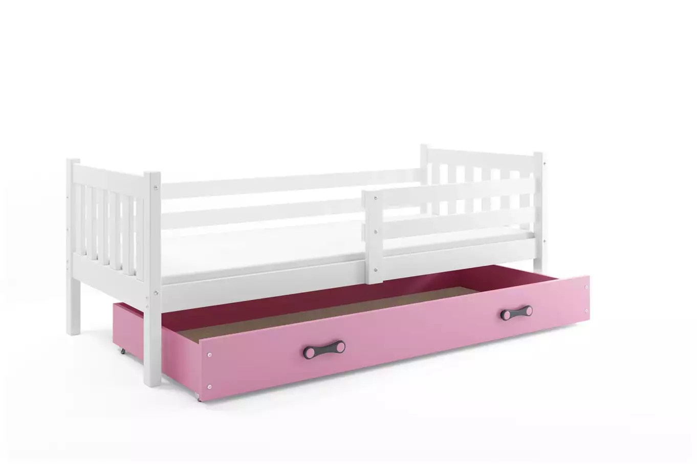 Dětská postel CARINO 90x200 cm se šuplíkem, bez matrace, Bílá/Růžová