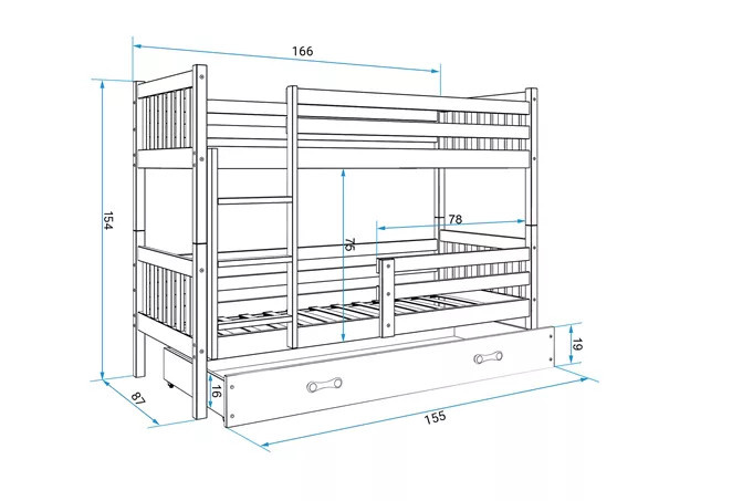 CARINO PIĘTROWE RAMA SOSNA SZUFLADA BIAŁY 80 X 160 KPL