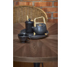 rozměry: o100/75 cm, materiál: MDF + přírodní dýha / práškově lakovaná ocel, barva: horní deska - ořech, nohy - černá