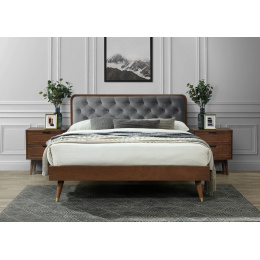 Postel CASSIDY je vyrobena z kvalitního dřeva, které zajišťuje pevnost a dlouhou životnost. Potahová látka v elegantní šedé barvě dodává posteli moderní vzhled, který se snadno kombinuje s různými styly interiéru. Ořechové detaily přidávají na sofistikovanosti a vytvářejí harmonický kontrast.