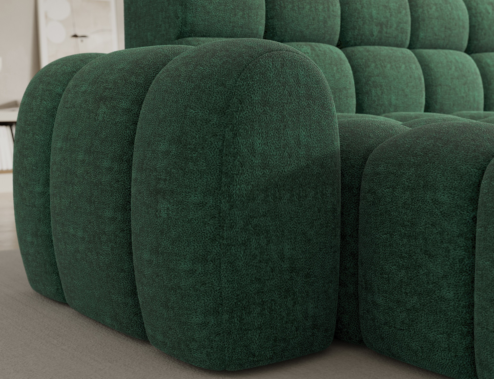 Rohová sedačka Ceedro je moderní rohová sedací souprava dostupná ve třech skupinách látek: Classic, Prestige a Premium. Kombinuje stylový vzhled s vysokou funkčností, což z něj činí ideální volbu pro moderní interiéry. S rozměry 283x98x165 cm nabízí prostornost a pohodlí, zatímco čalouněná záda umožňují volné umístění v obývacím pokoji. Pohodlí při sezení je zajištěno vysoce kvalitními materiály: HR pěnou a pěnou T2315 v sedáku, zakončenými vrstvou T2130, což zajišťuje odolnost, pružnost a příjemné používání. Opěradlo je vyplněno pěnou T2540 a T2315, což zajišťuje správnou oporu zad. Ceedro je vybaven elektrickým prodloužením sedadla, které umožňuje nastavení hloubky pro ještě větší pohodlí přizpůsobené individuálním potřebám. Funkce spaní z něj dělá ideální dodatečný prostor pro spaní. Plastové černé kluzáky na nábytek mu dodávají lehký a moderní charakter a zároveň usnadňují jeho pohyb po podlaze. Ceedro je vynikající volbou pro ty, kteří hledají moderní rohovou pohovku, která kombinuje design, pohodlí a praktická řešení pro každodenní použití.