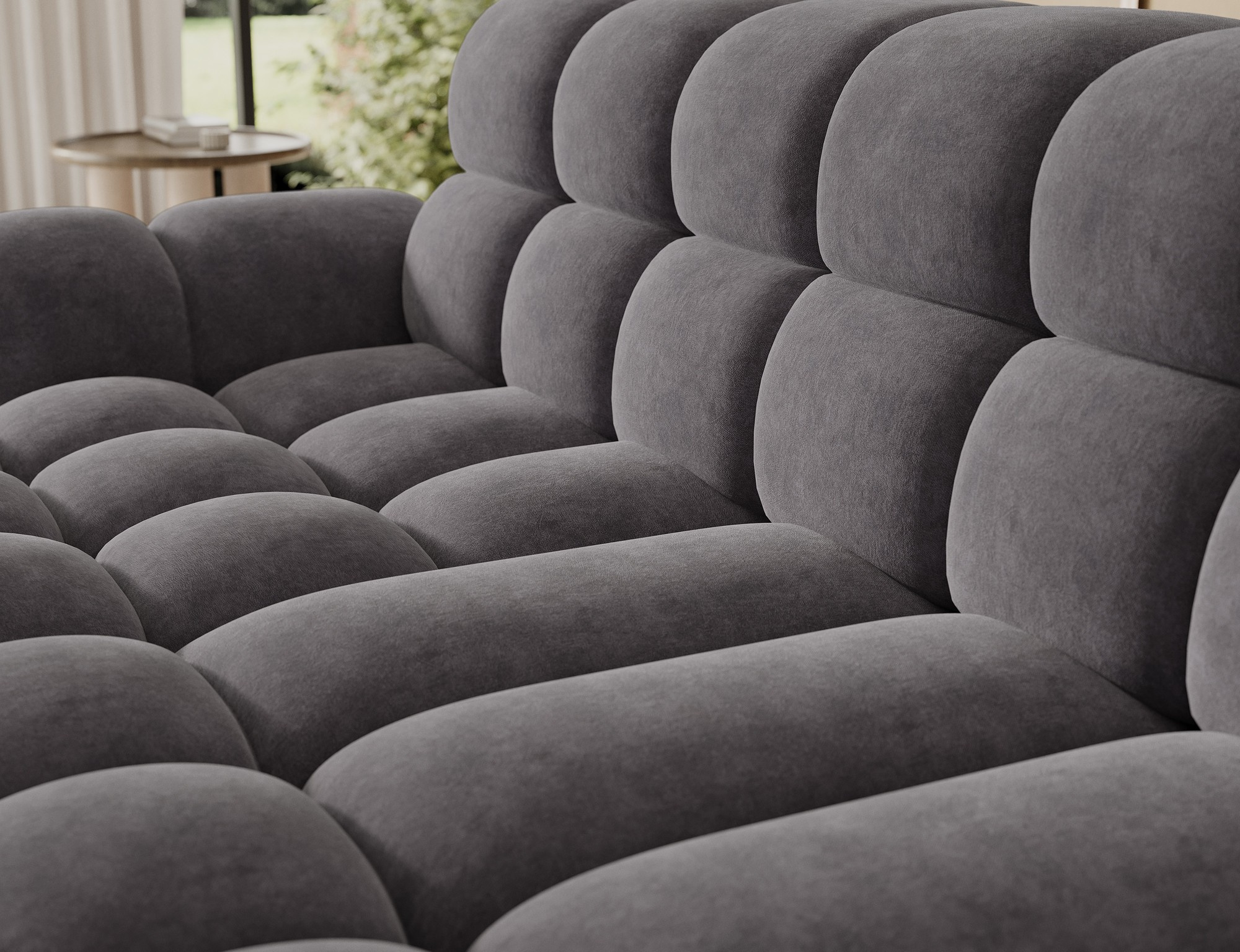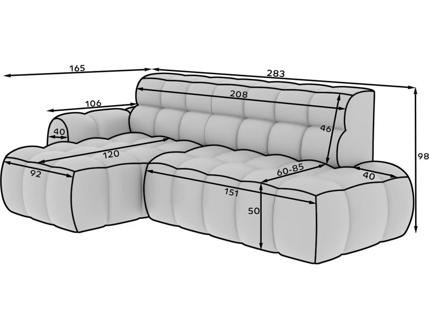 Rohová sedačka Ceedro je moderní rohová sedací souprava dostupná ve třech skupinách látek: Classic, Prestige a Premium. Kombinuje stylový vzhled s vysokou funkčností, což z něj činí ideální volbu pro moderní interiéry. S rozměry 283x98x165 cm nabízí prostornost a pohodlí, zatímco čalouněná záda umožňují volné umístění v obývacím pokoji. Pohodlí při sezení je zajištěno vysoce kvalitními materiály: HR pěnou a pěnou T2315 v sedáku, zakončenými vrstvou T2130, což zajišťuje odolnost, pružnost a příjemné používání. Opěradlo je vyplněno pěnou T2540 a T2315, což zajišťuje správnou oporu zad. Ceedro je vybaven elektrickým prodloužením sedadla, které umožňuje nastavení hloubky pro ještě větší pohodlí přizpůsobené individuálním potřebám. Funkce spaní z něj dělá ideální dodatečný prostor pro spaní. Plastové černé kluzáky na nábytek mu dodávají lehký a moderní charakter a zároveň usnadňují jeho pohyb po podlaze. Ceedro je vynikající volbou pro ty, kteří hledají moderní rohovou pohovku, která kombinuje design, pohodlí a praktická řešení pro každodenní použití.