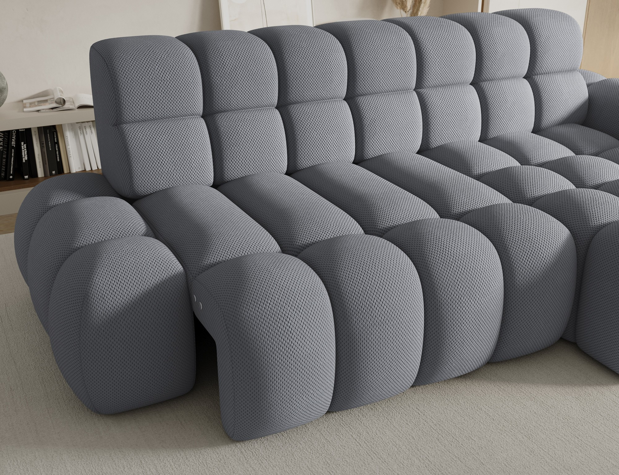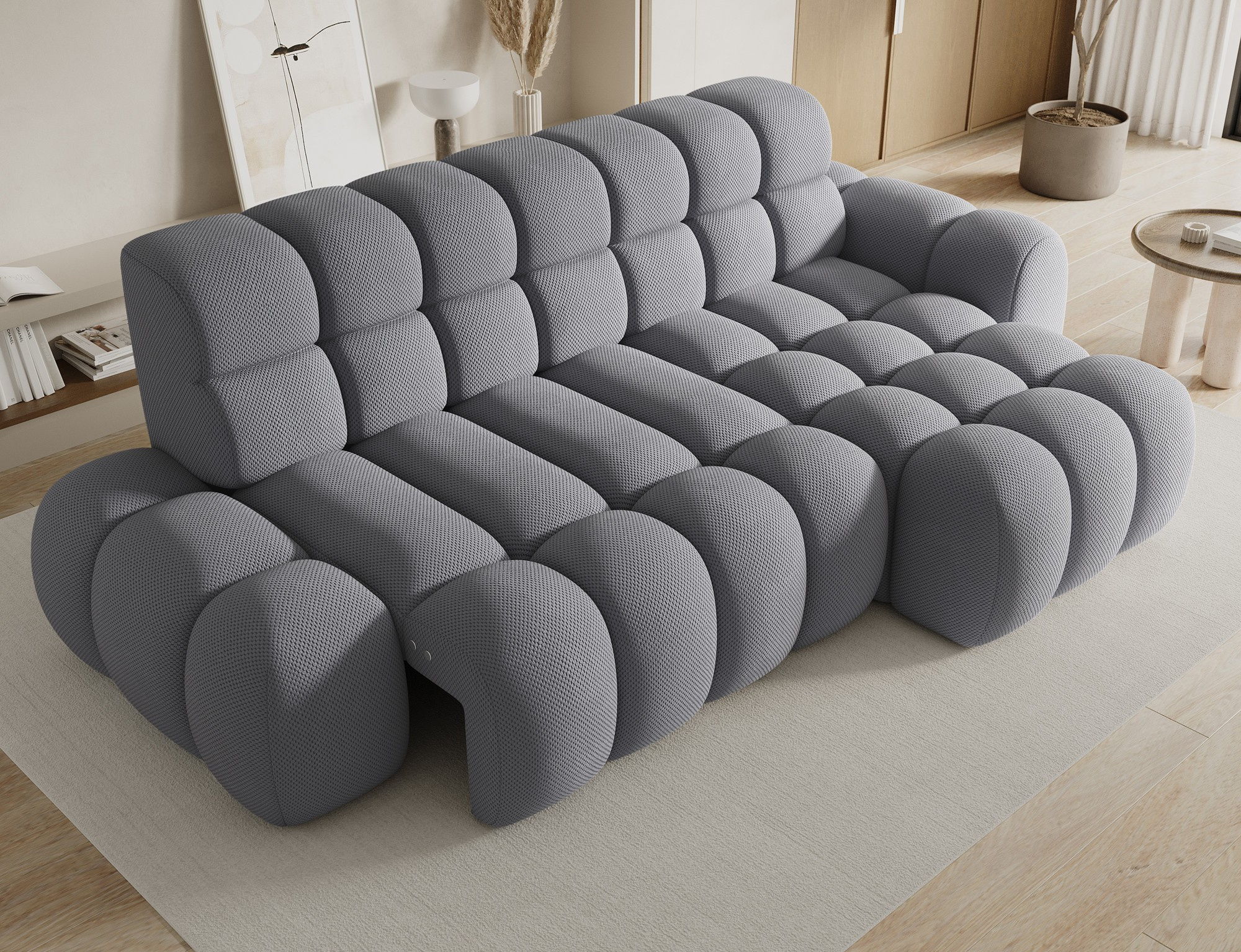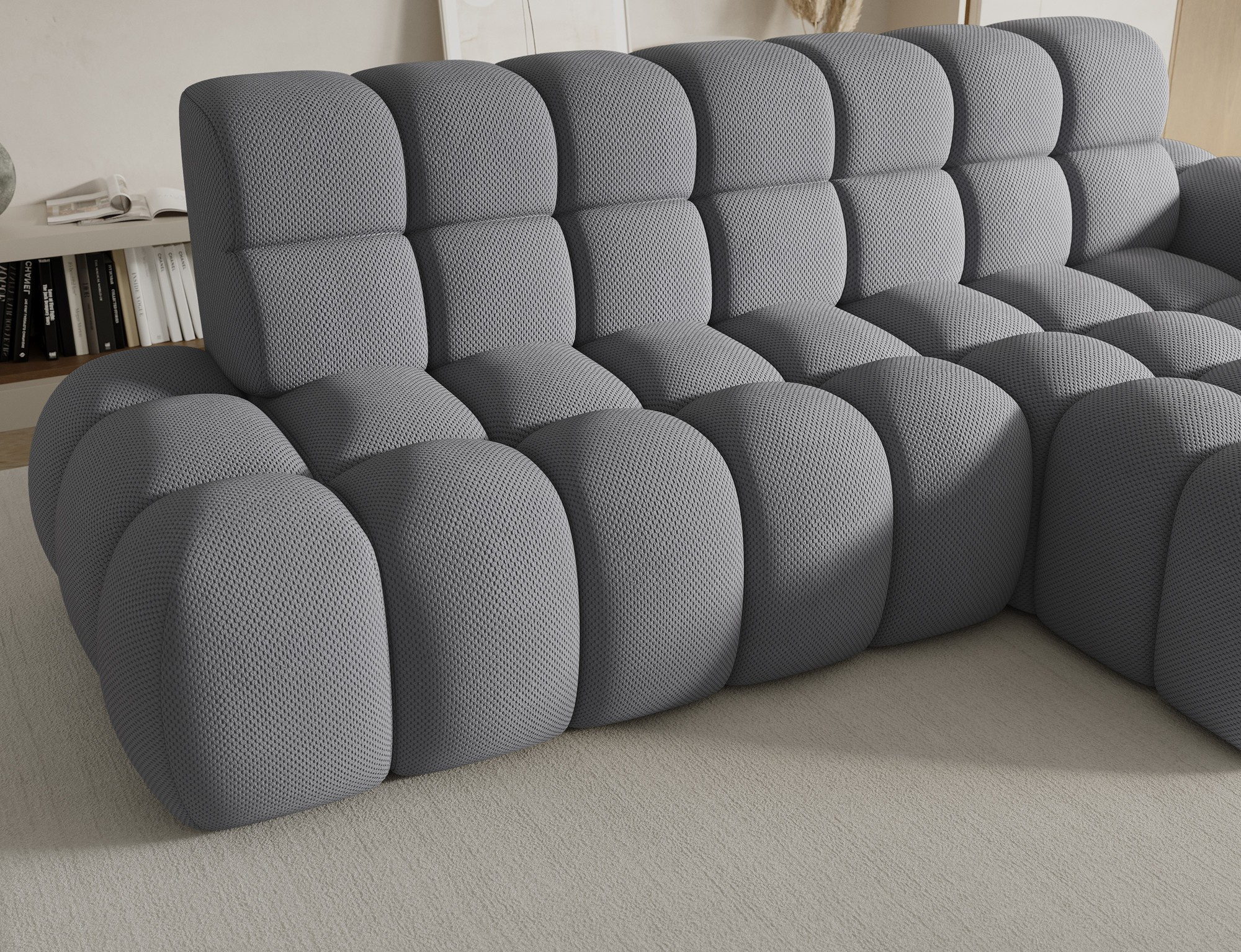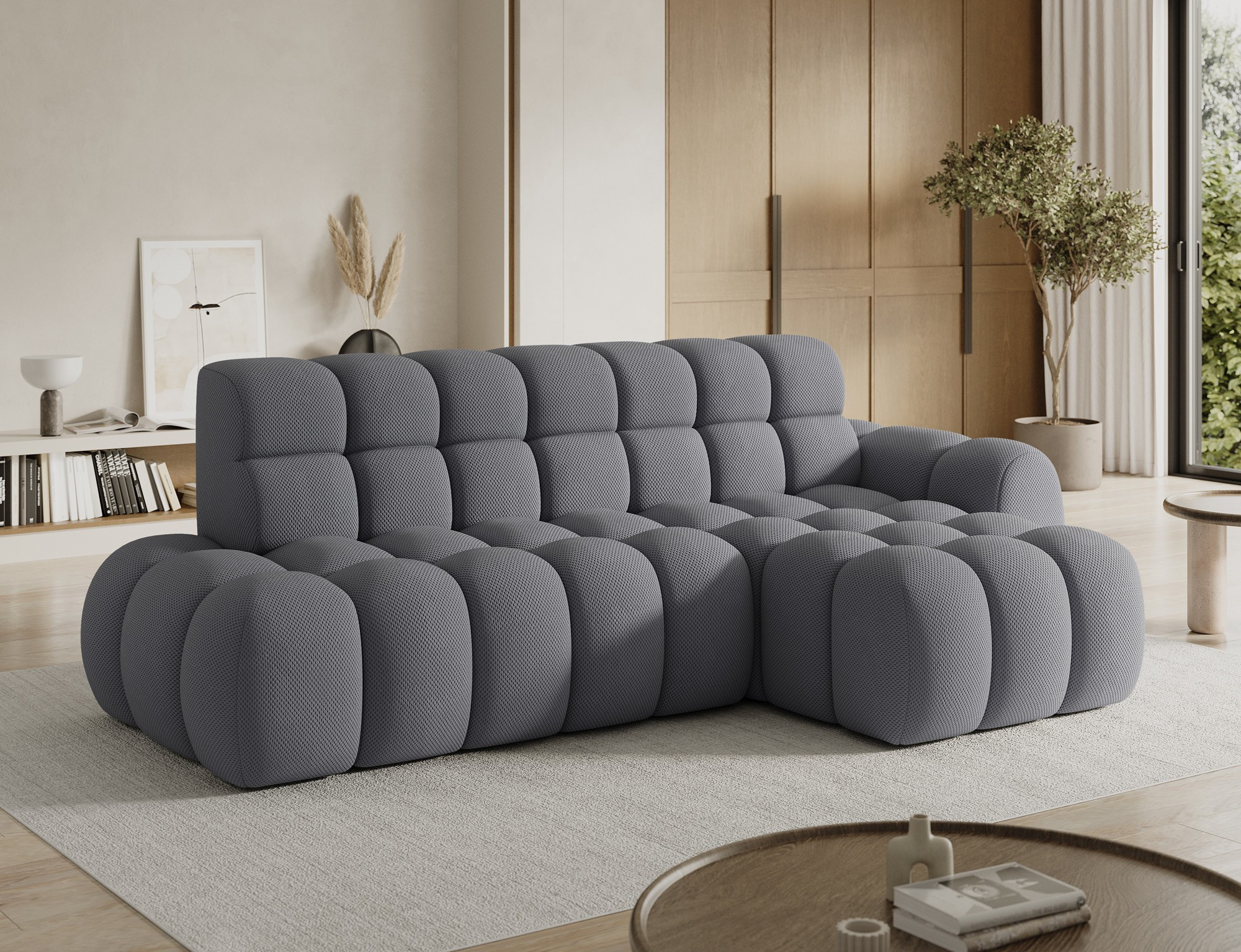 Rohová sedačka Ceedro je moderní rohová sedací souprava dostupná ve třech skupinách látek: Classic, Prestige a Premium. Kombinuje stylový vzhled s vysokou funkčností, což z něj činí ideální volbu pro moderní interiéry. S rozměry 283x98x165 cm nabízí prostornost a pohodlí, zatímco čalouněná záda umožňují volné umístění v obývacím pokoji. Pohodlí při sezení je zajištěno vysoce kvalitními materiály: HR pěnou a pěnou T2315 v sedáku, zakončenými vrstvou T2130, což zajišťuje odolnost, pružnost a příjemné používání. Opěradlo je vyplněno pěnou T2540 a T2315, což zajišťuje správnou oporu zad. Ceedro je vybaven elektrickým prodloužením sedadla, které umožňuje nastavení hloubky pro ještě větší pohodlí přizpůsobené individuálním potřebám. Funkce spaní z něj dělá ideální dodatečný prostor pro spaní. Plastové černé kluzáky na nábytek mu dodávají lehký a moderní charakter a zároveň usnadňují jeho pohyb po podlaze. Ceedro je vynikající volbou pro ty, kteří hledají moderní rohovou pohovku, která kombinuje design, pohodlí a praktická řešení pro každodenní použití.