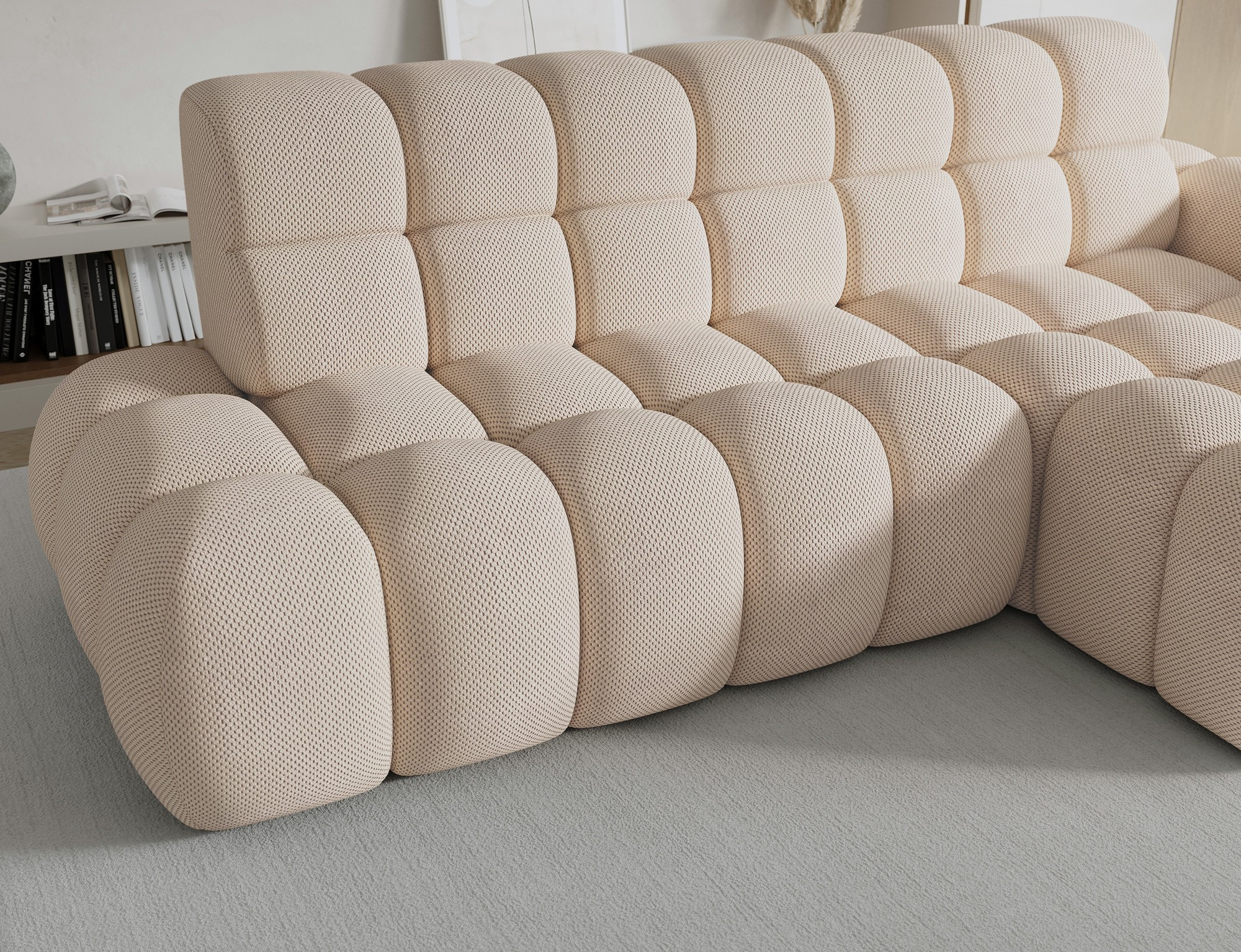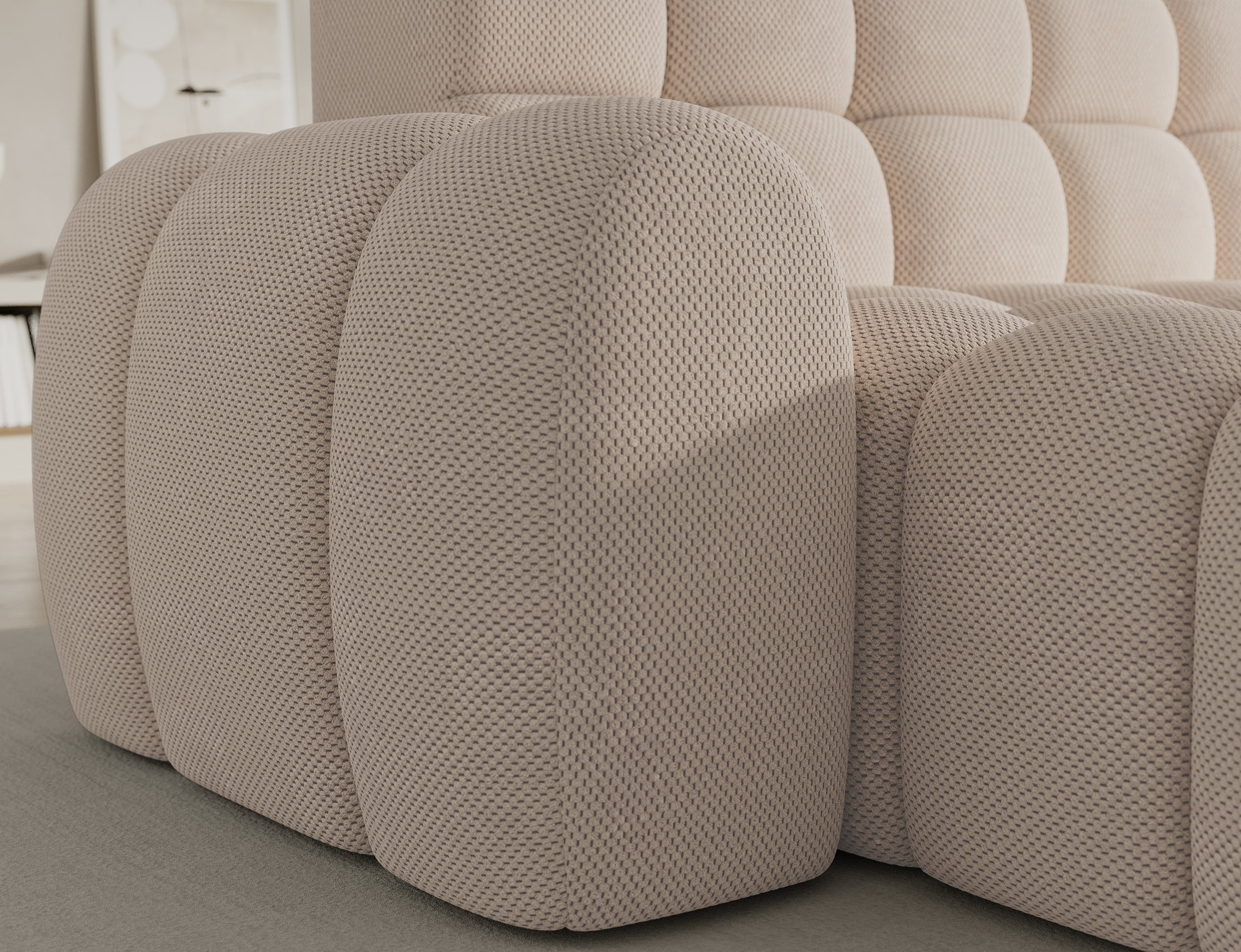 Rohová sedačka Ceedro je moderní rohová sedací souprava dostupná ve třech skupinách látek: Classic, Prestige a Premium. Kombinuje stylový vzhled s vysokou funkčností, což z něj činí ideální volbu pro moderní interiéry. S rozměry 283x98x165 cm nabízí prostornost a pohodlí, zatímco čalouněná záda umožňují volné umístění v obývacím pokoji. Pohodlí při sezení je zajištěno vysoce kvalitními materiály: HR pěnou a pěnou T2315 v sedáku, zakončenými vrstvou T2130, což zajišťuje odolnost, pružnost a příjemné používání. Opěradlo je vyplněno pěnou T2540 a T2315, což zajišťuje správnou oporu zad. Ceedro je vybaven elektrickým prodloužením sedadla, které umožňuje nastavení hloubky pro ještě větší pohodlí přizpůsobené individuálním potřebám. Funkce spaní z něj dělá ideální dodatečný prostor pro spaní. Plastové černé kluzáky na nábytek mu dodávají lehký a moderní charakter a zároveň usnadňují jeho pohyb po podlaze. Ceedro je vynikající volbou pro ty, kteří hledají moderní rohovou pohovku, která kombinuje design, pohodlí a praktická řešení pro každodenní použití.