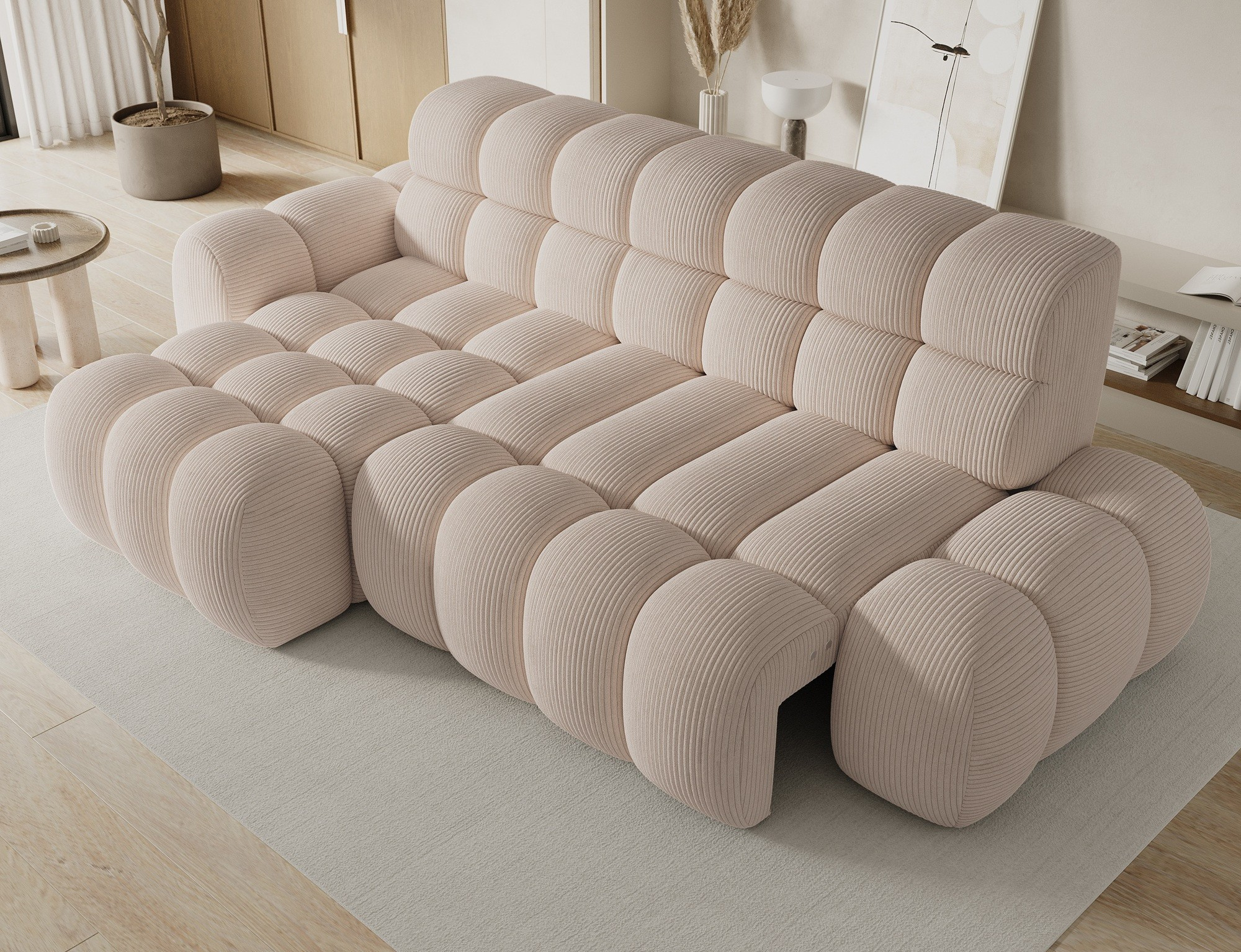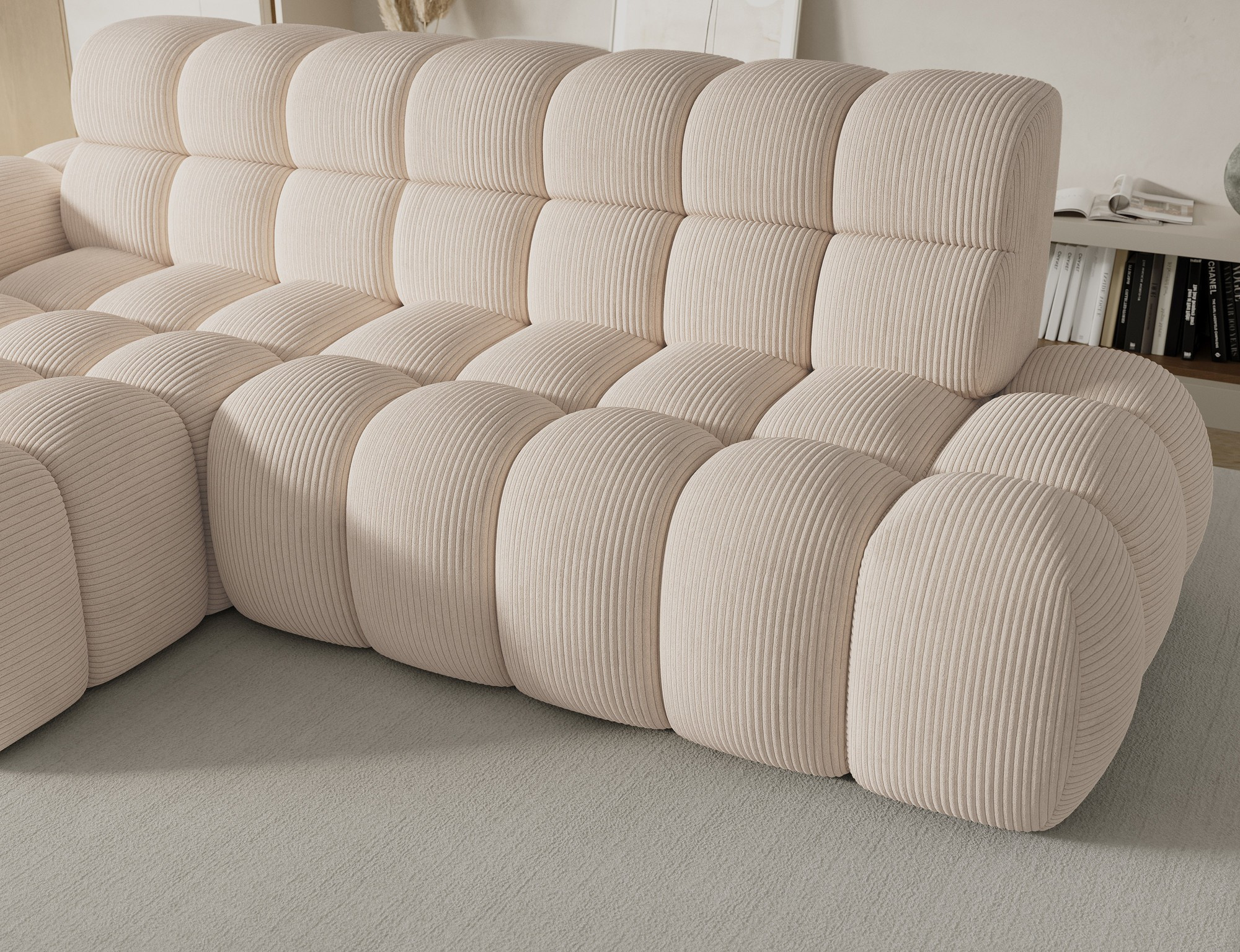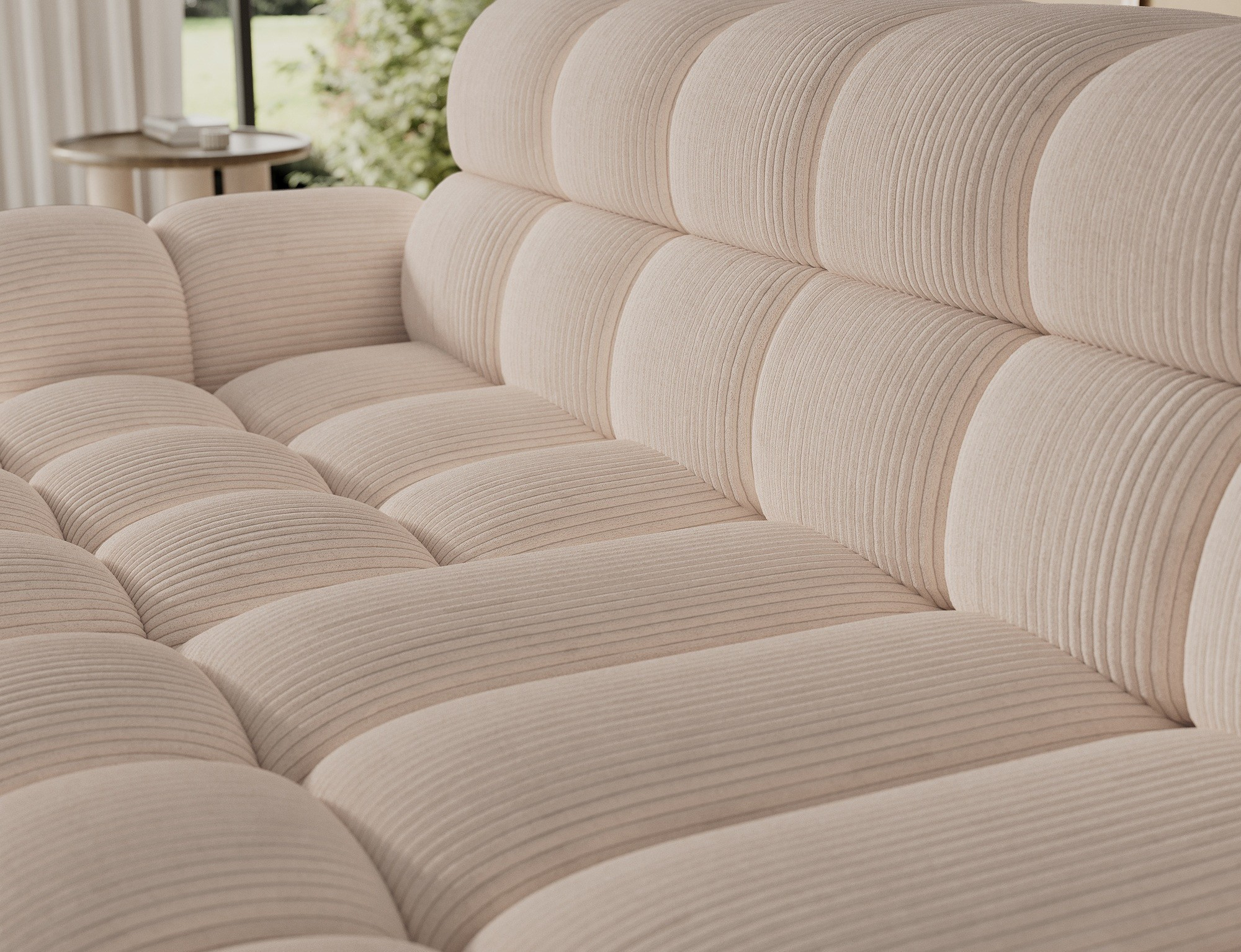 Rohová sedačka Ceedro je moderní rohová sedací souprava dostupná ve třech skupinách látek: Classic, Prestige a Premium. Kombinuje stylový vzhled s vysokou funkčností, což z něj činí ideální volbu pro moderní interiéry. S rozměry 283x98x165 cm nabízí prostornost a pohodlí, zatímco čalouněná záda umožňují volné umístění v obývacím pokoji. Pohodlí při sezení je zajištěno vysoce kvalitními materiály: HR pěnou a pěnou T2315 v sedáku, zakončenými vrstvou T2130, což zajišťuje odolnost, pružnost a příjemné používání. Opěradlo je vyplněno pěnou T2540 a T2315, což zajišťuje správnou oporu zad. Ceedro je vybaven elektrickým prodloužením sedadla, které umožňuje nastavení hloubky pro ještě větší pohodlí přizpůsobené individuálním potřebám. Funkce spaní z něj dělá ideální dodatečný prostor pro spaní. Plastové černé kluzáky na nábytek mu dodávají lehký a moderní charakter a zároveň usnadňují jeho pohyb po podlaze. Ceedro je vynikající volbou pro ty, kteří hledají moderní rohovou pohovku, která kombinuje design, pohodlí a praktická řešení pro každodenní použití.