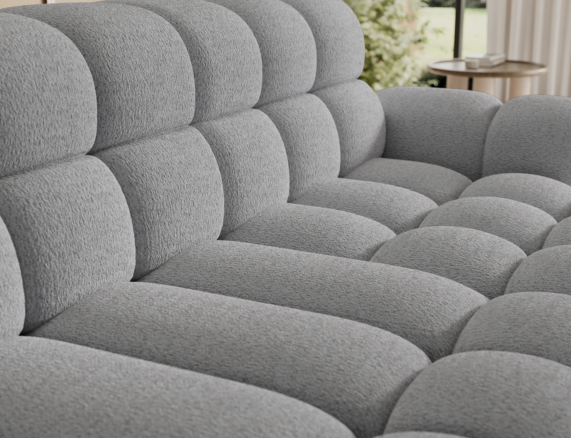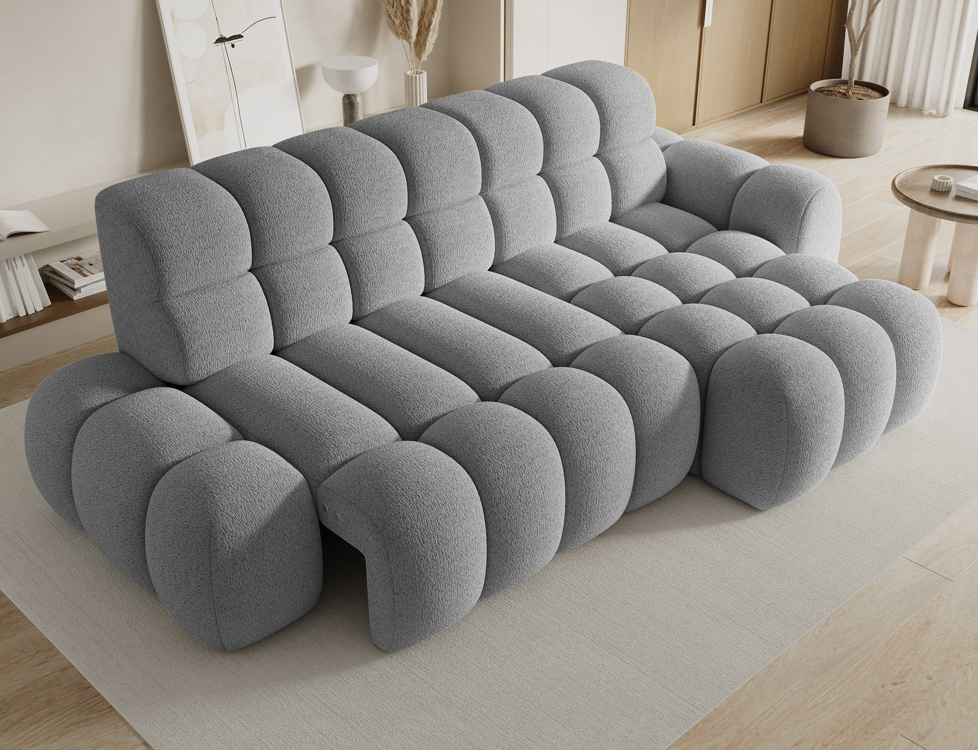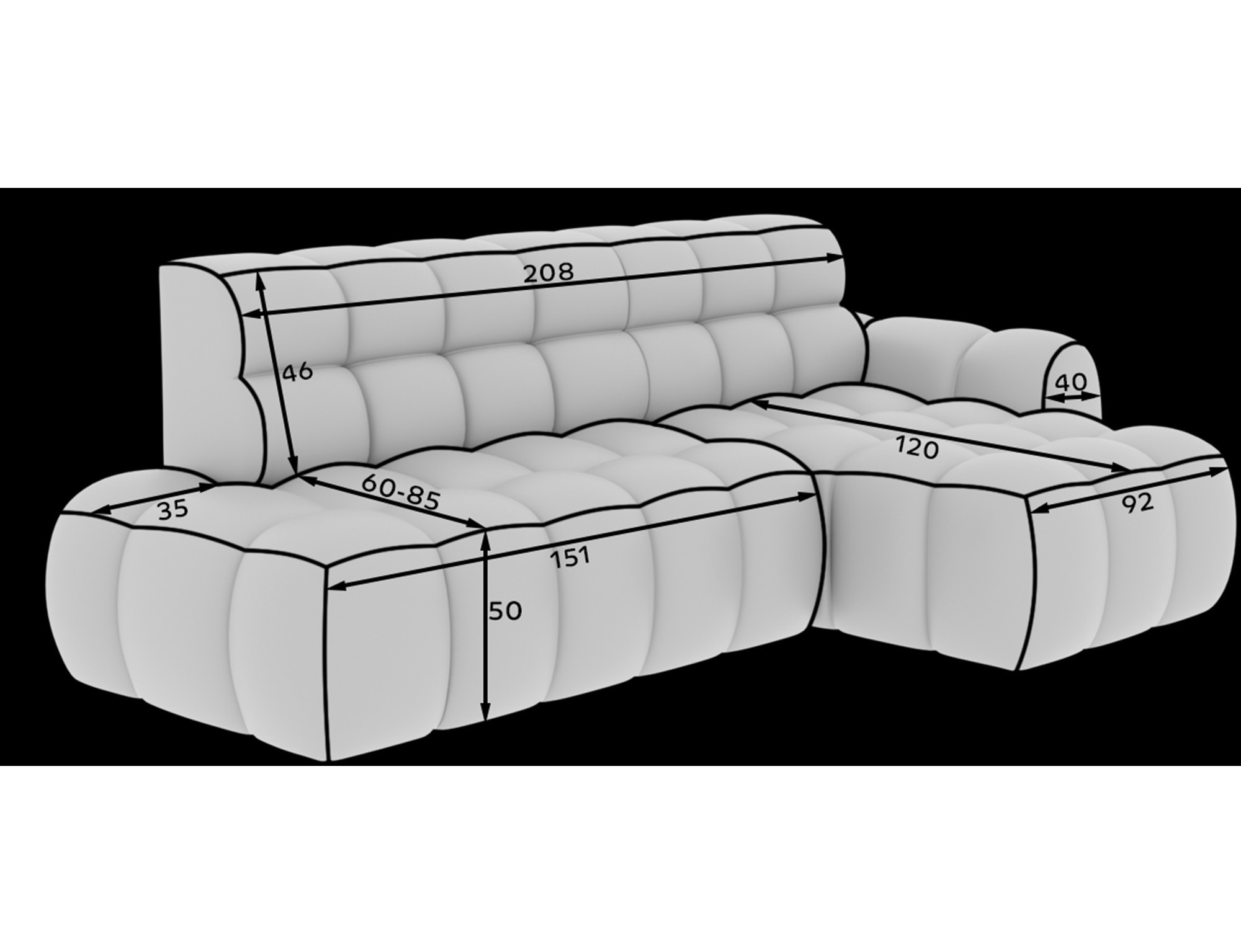 Rohová sedačka Ceedro je moderní rohová sedací souprava dostupná ve třech skupinách látek: Classic, Prestige a Premium. Kombinuje stylový vzhled s vysokou funkčností, což z něj činí ideální volbu pro moderní interiéry. S rozměry 283x98x165 cm nabízí prostornost a pohodlí, zatímco čalouněná záda umožňují volné umístění v obývacím pokoji. Pohodlí při sezení je zajištěno vysoce kvalitními materiály: HR pěnou a pěnou T2315 v sedáku, zakončenými vrstvou T2130, což zajišťuje odolnost, pružnost a příjemné používání. Opěradlo je vyplněno pěnou T2540 a T2315, což zajišťuje správnou oporu zad. Ceedro je vybaven elektrickým prodloužením sedadla, které umožňuje nastavení hloubky pro ještě větší pohodlí přizpůsobené individuálním potřebám. Funkce spaní z něj dělá ideální dodatečný prostor pro spaní. Plastové černé kluzáky na nábytek mu dodávají lehký a moderní charakter a zároveň usnadňují jeho pohyb po podlaze. Ceedro je vynikající volbou pro ty, kteří hledají moderní rohovou pohovku, která kombinuje design, pohodlí a praktická řešení pro každodenní použití.
