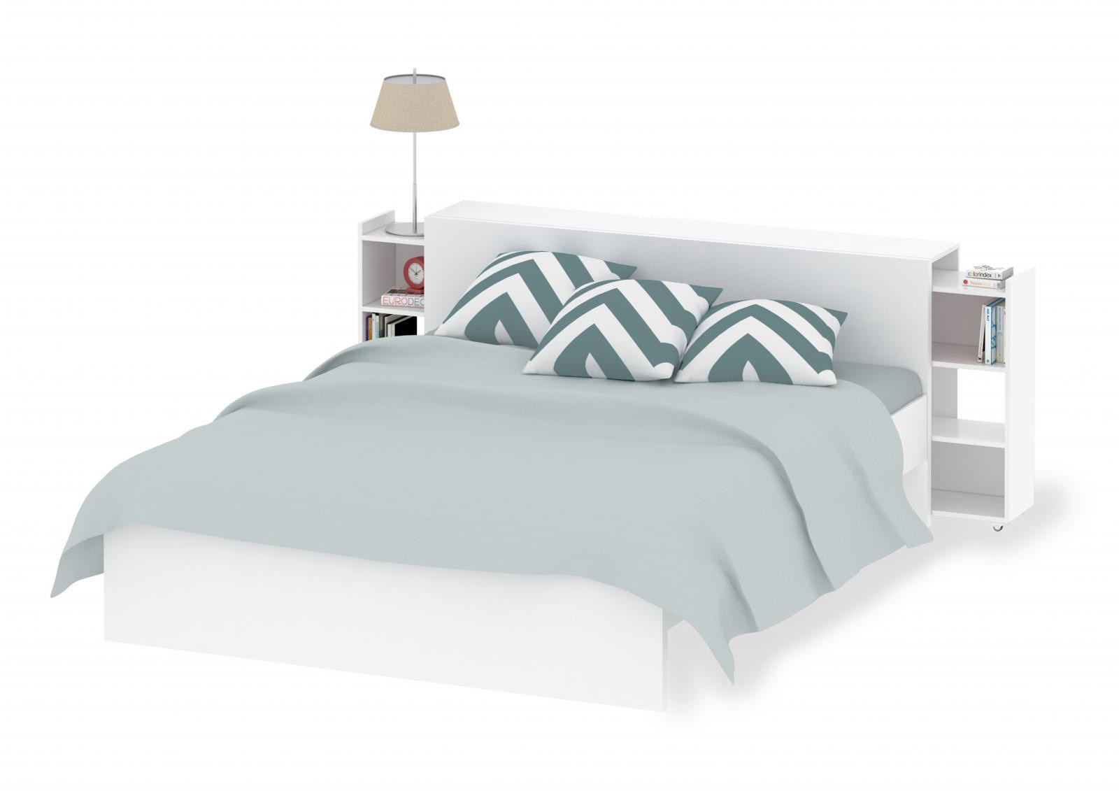 Čelo postele s posuvnými regály síře 160 cm, je skvělým doplňkem k posteli Simplicity 160x200 cm. Se svým skrytým úložným prostorem na knihy, časopisy a všechny další věci, které byste rádi měli po ruce, se stane velmi praktickým a využívaným kusem nábytku. Když jsou regály vysunuté a nahradí Vám noční stolek. Jakmile je zasunete, bude Vaše ložnice stále působit uspořádaně. Pro snadné posunování jsou regály vybaveny kolečky. Čelo je dodáváno v demontu a součástí balení je montážní plánek včetně všech potřebných spojovacích prvků. Vyobrazené dekorace nejsou v ceně.