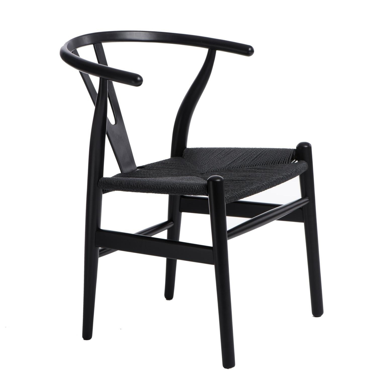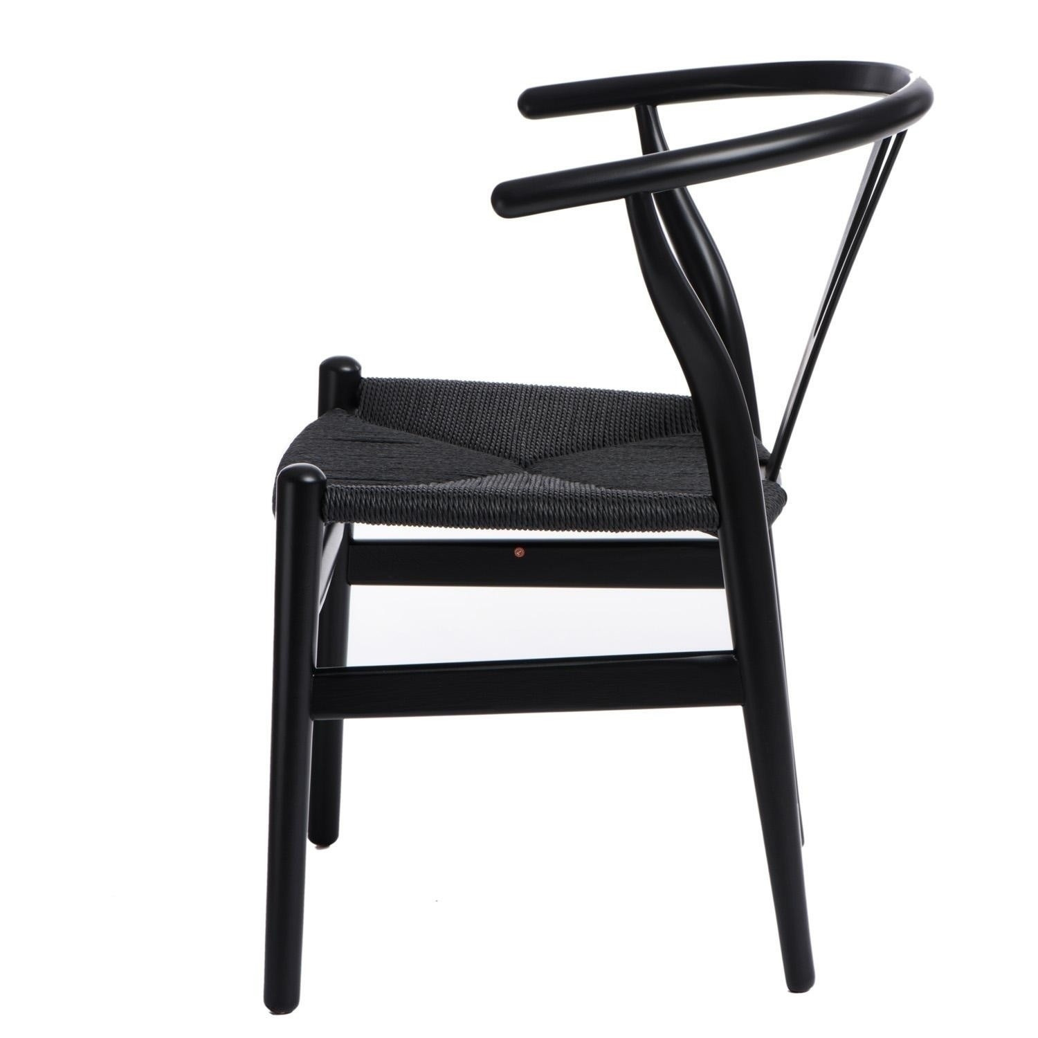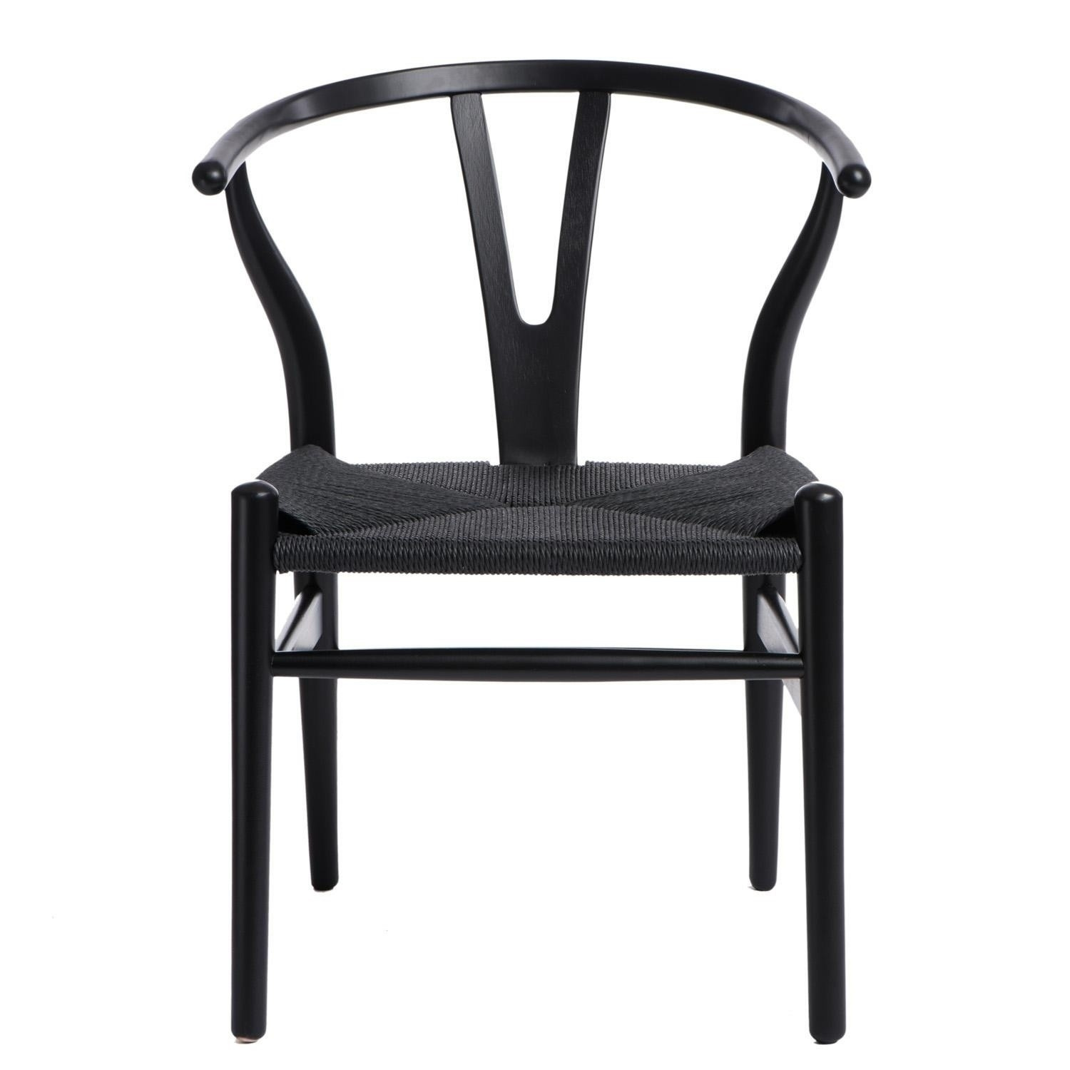 Černá proutěná židle inspirovaná Wishbone