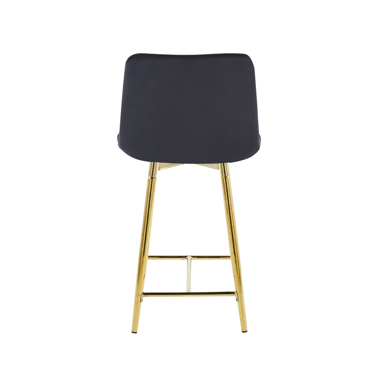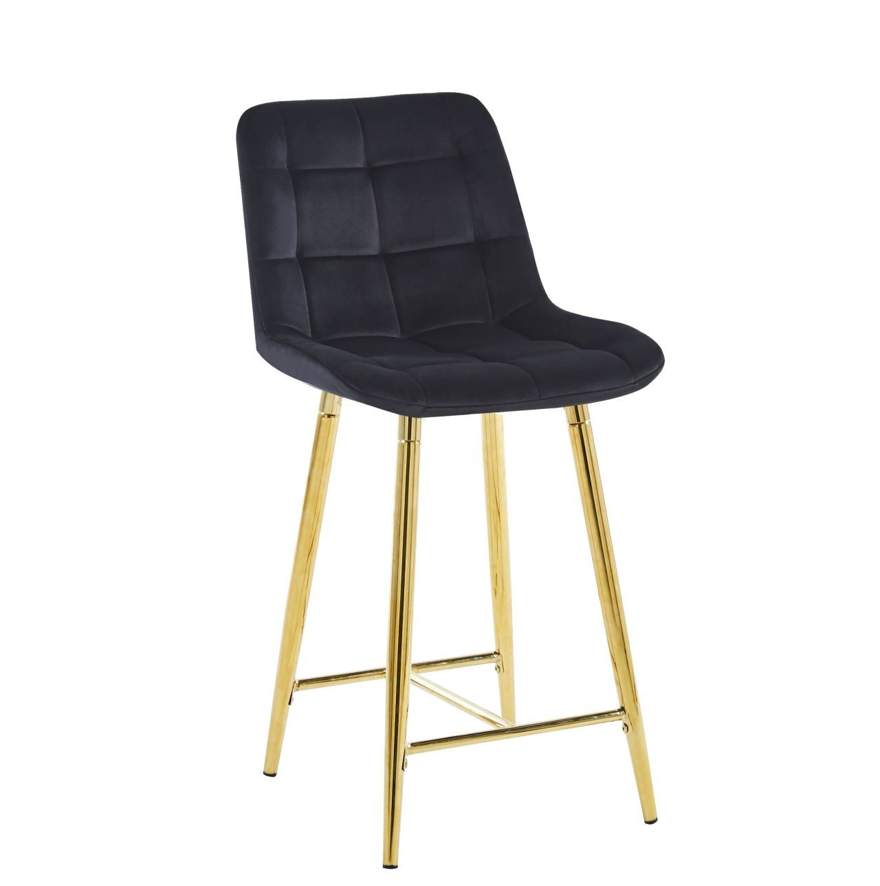 Rozměry: - šířka sedáku: 44 cm - výška sedáku: 61 cm - celková výška: 90 cm - hloubka sedáku: 37 cm Materiál - čalounění: samet - nohy: chrom Barva: - sedák: černá - konstrukce: zlatá