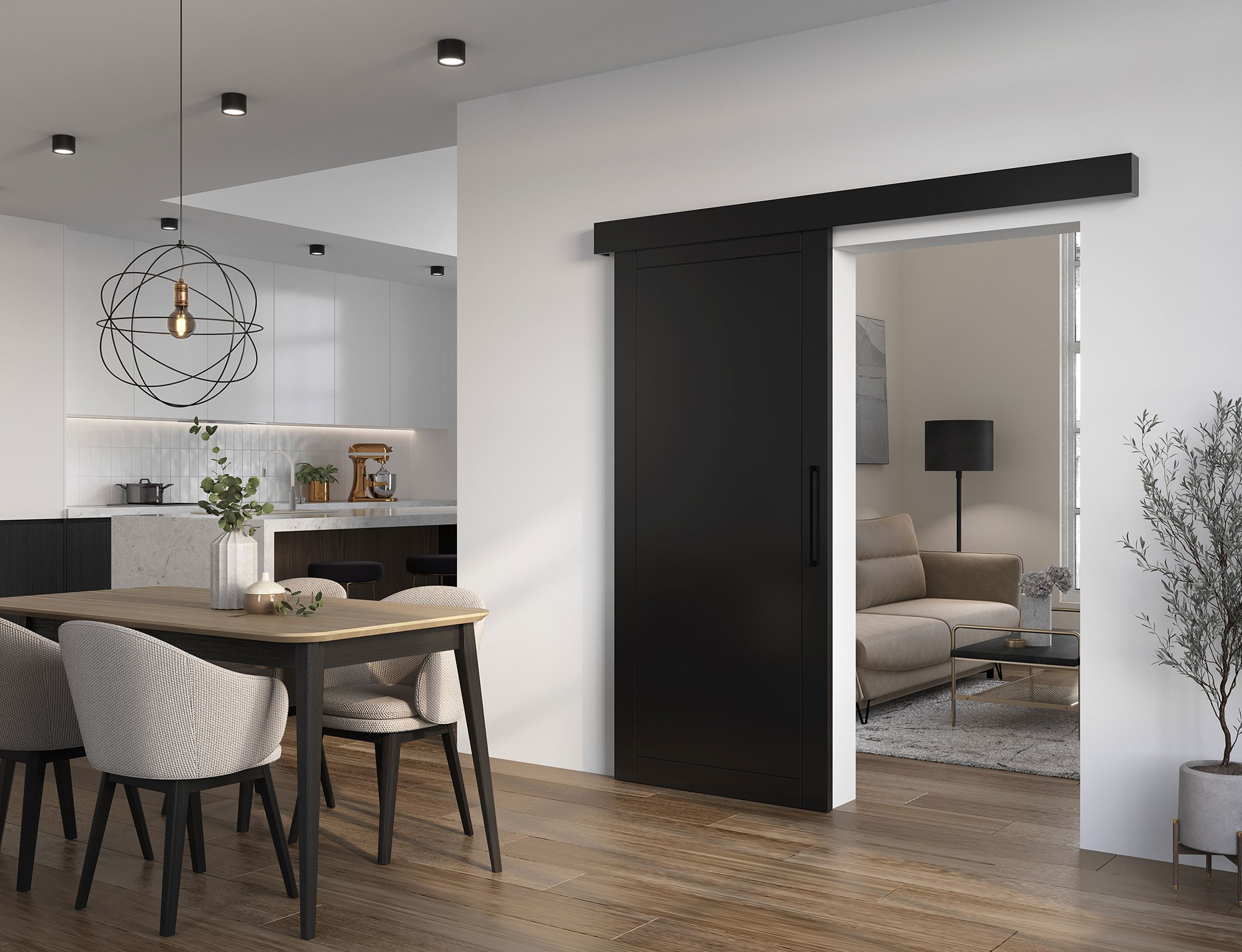 Minimalistický design a vysoce kvalitní materiály činí dveře Charlise ideálními pro obývací pokoj, kuchyň nebo ložnici. Měří 90 cm na šířku a 204 cm na výšku, což odpovídá standardním dveřním otvorům. Vyrobeny z laminované nábytkové desky, jsou k dispozici v polomatné černé barvě (Black 190PE).Vybaveno mechanismem Laguna STANDARD 1990 s vodicí lištou o délce 195 cm, dveře Charlise se posouvají hladce a tiše. Sada obsahuje kryt z laminované nábytkové desky a černou plastovou rukojeť. Dveře jsou k dispozici s mechanismem měkkého zavírání nebo bez něj a mají zarážku, vozík a spodní vodítko, což zajišťuje bezpečnost a pohodlí.Instalace je jednoduchá, provádí se připevněním na zeď. Posuvné dveře Charlise jsou ideálním řešením pro ty, kteří si cení funkčnosti, estetiky a moderního designu.